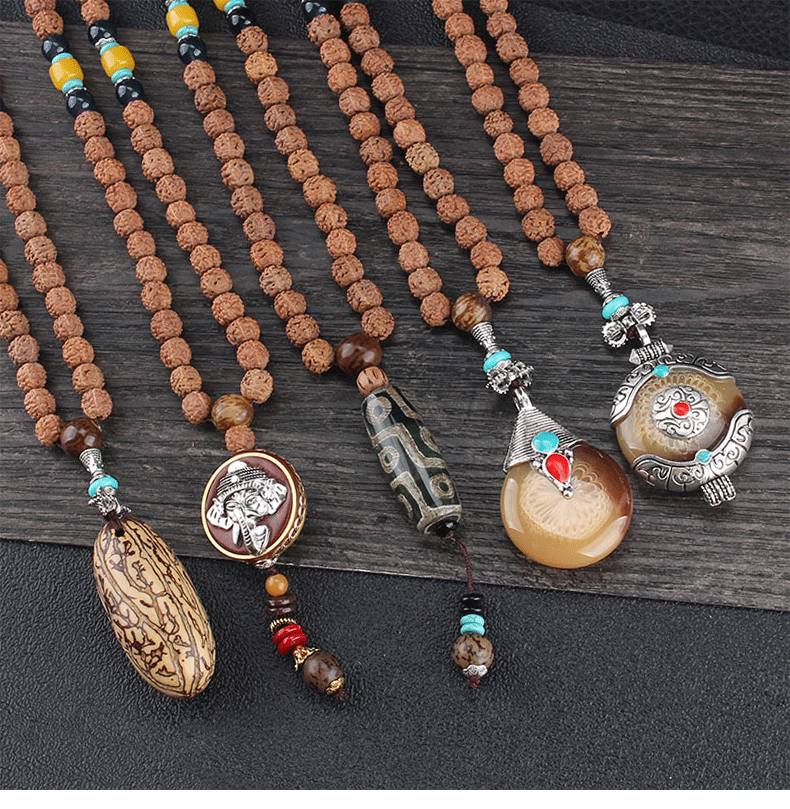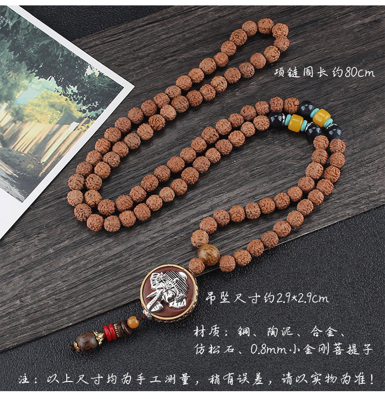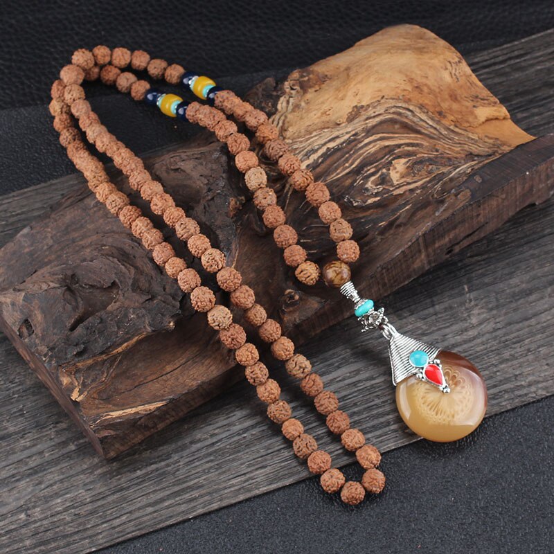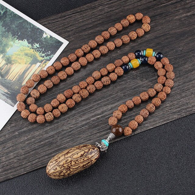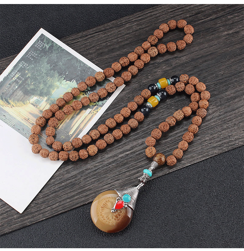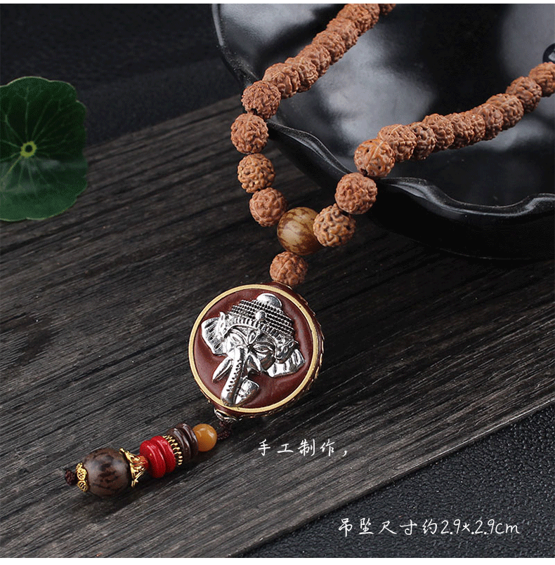 8mm Rudraksha Bead Necklace Handmade Nepal Tibetan Buddhism Yoga Healing Mala Necklace Elephant Dzi Eye Pendant Necklace Jewelry