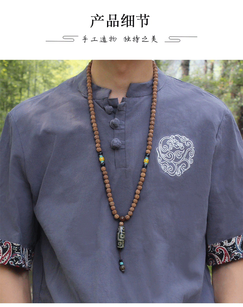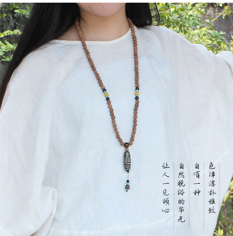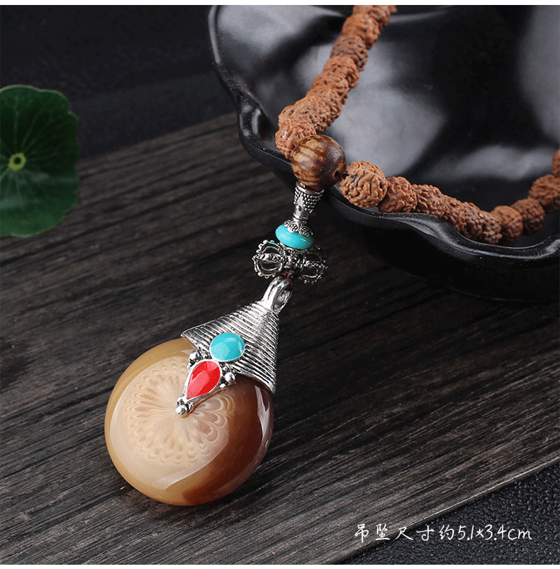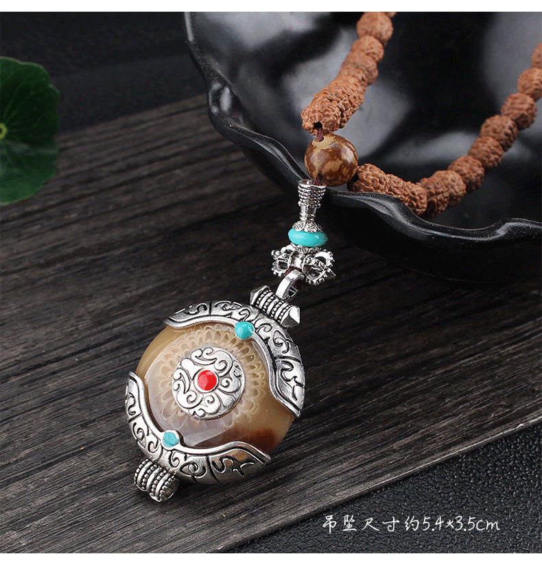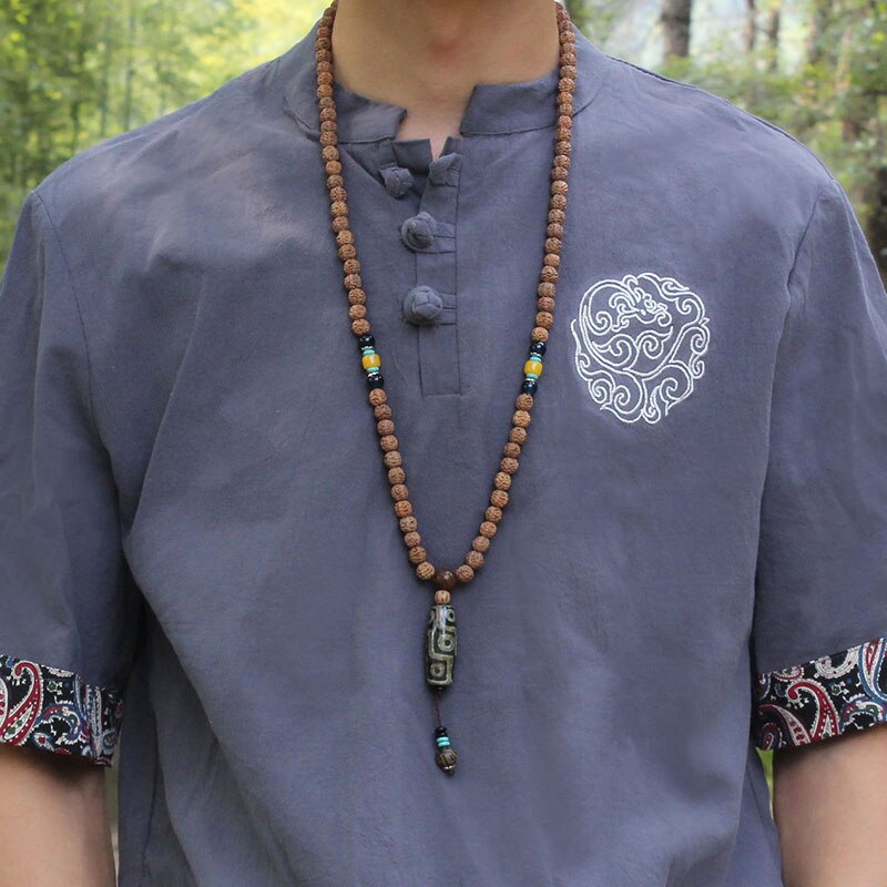 8mm Rudraksha Bead Necklace Handmade Nepal Tibetan Buddhism Yoga Healing Mala Necklace Elephant Dzi Eye Pendant Necklace Jewelry