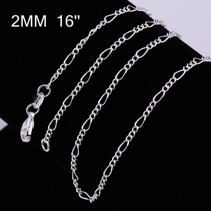 925 Silver Colour 2mm Chain Necklace For Women 16/18/20/22/24/26/28/30 Inch Jewelry Accessories GaaBou