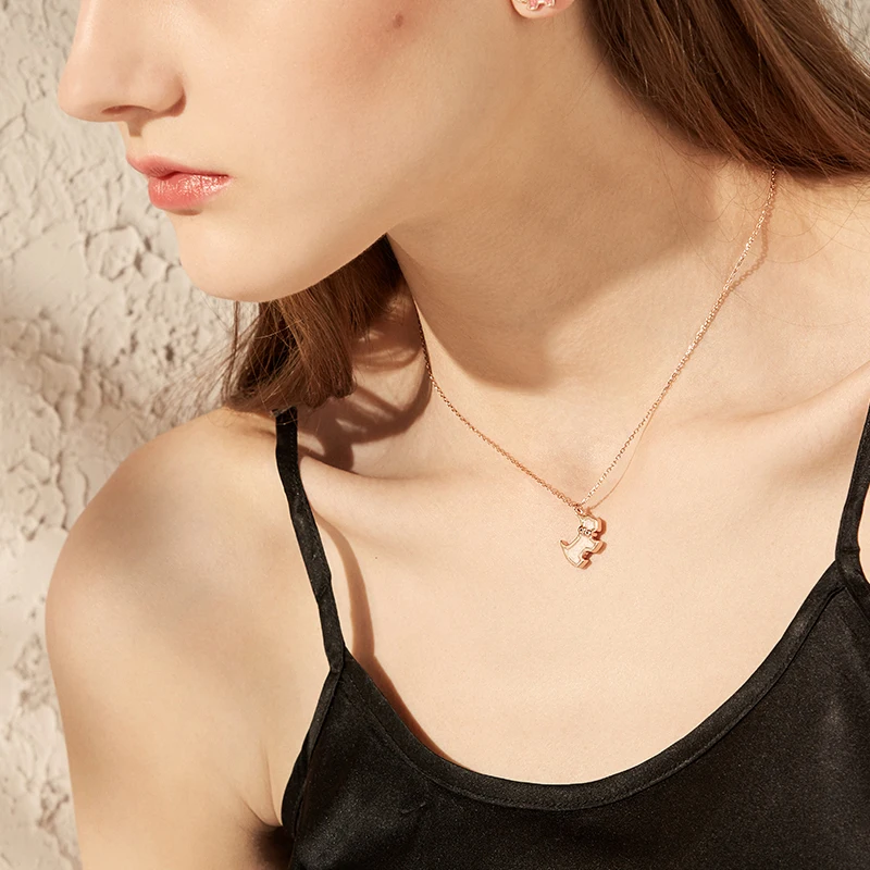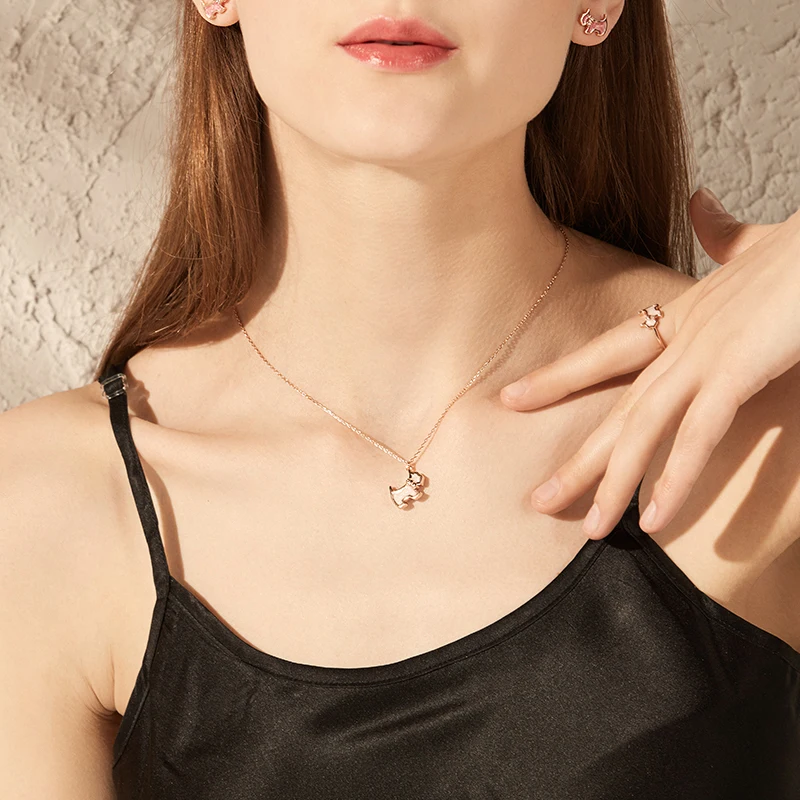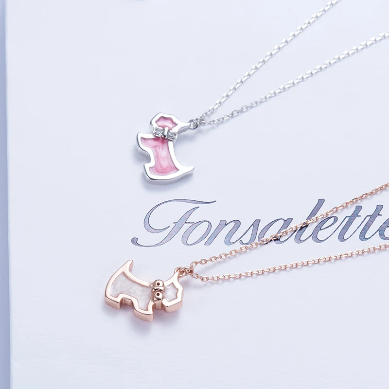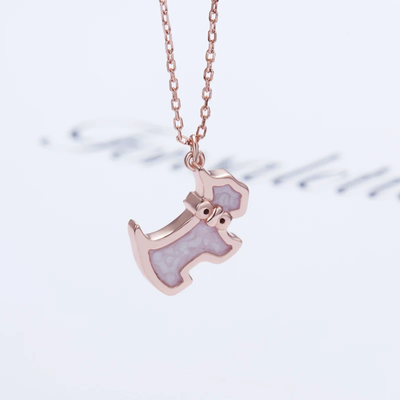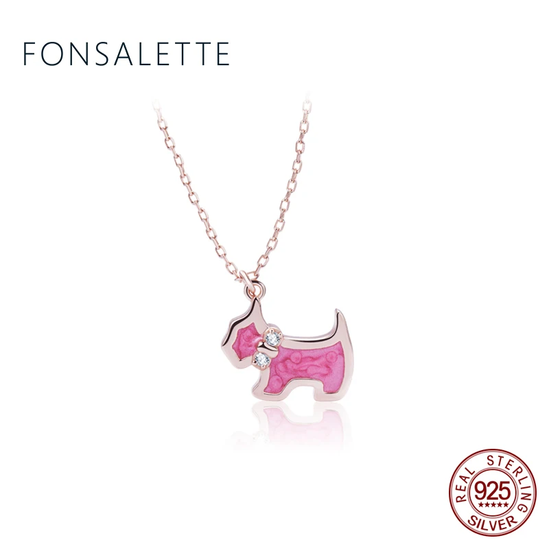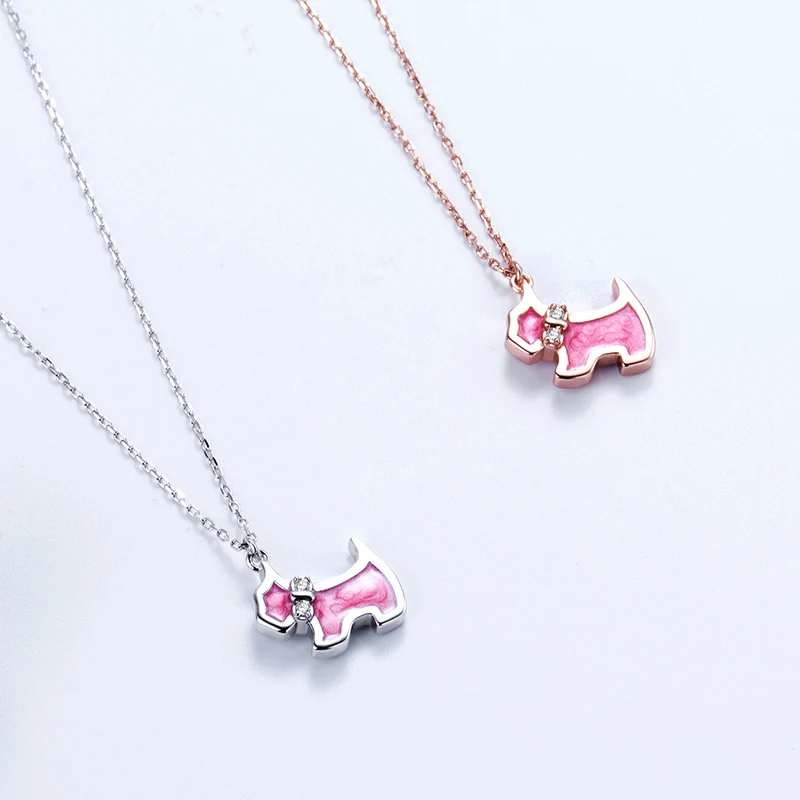 925 Silver Necklaces Brand Statement Pink Dog Doggie Necklace Collar Pendant Enamel Animal Jewelry Women Chistmas Gift zk40