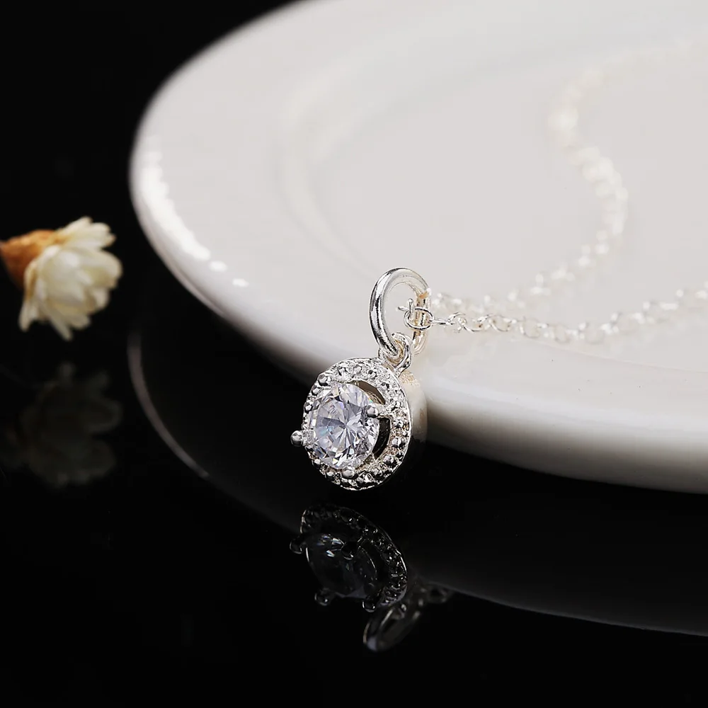 925 Stamped Silver beautiful crystal diamond Pendant Necklace For Women fine Holiday gifts Wedding party Jewelry
