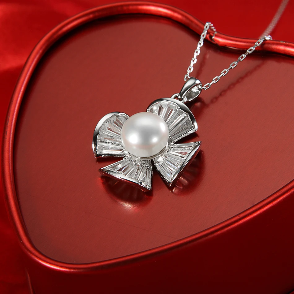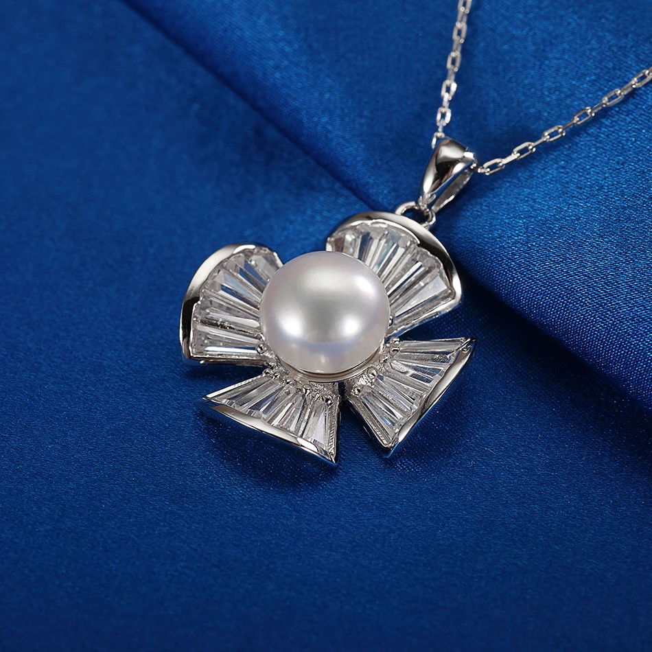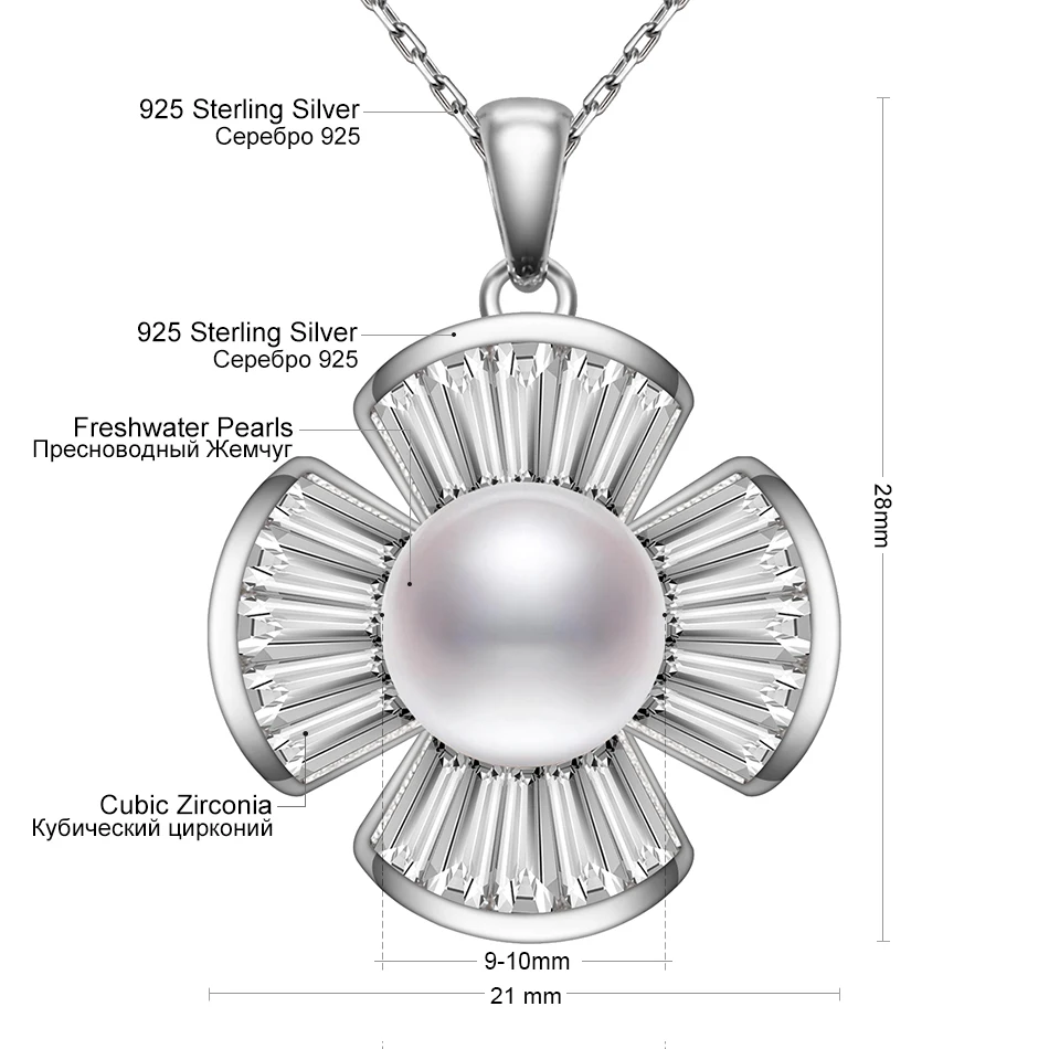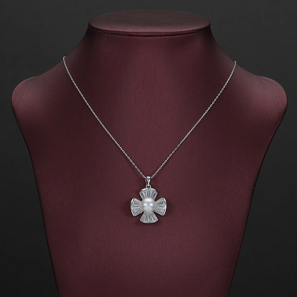 925 Sterling Silver Cross Pendant Natural Pearl Necklace for Women Fine Jewelry 9-10mm White Pearl Chain Beads Feige
