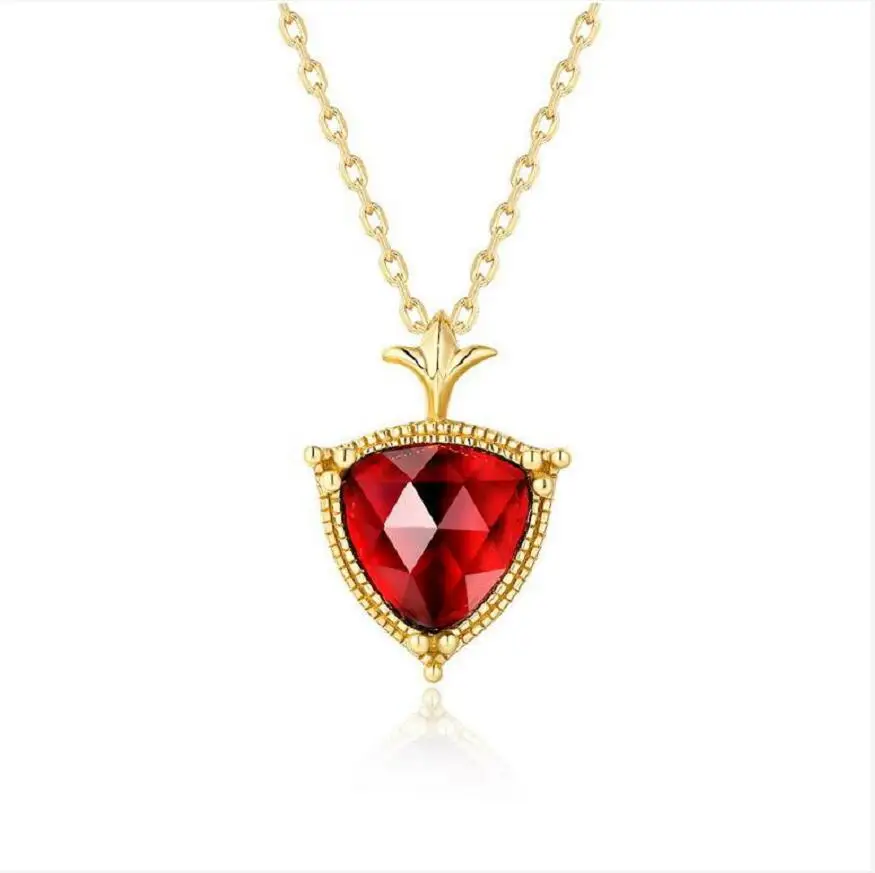 925 sterling silver hibiscus stone topaz garnet necklace female girlfriend girlfriends gift J0232