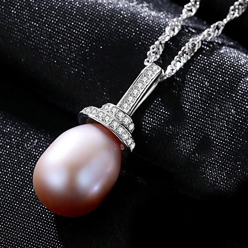 925 sterling silver necklace 100% genuine natural pearl necklace&pendant for women white/pink/purple three color
