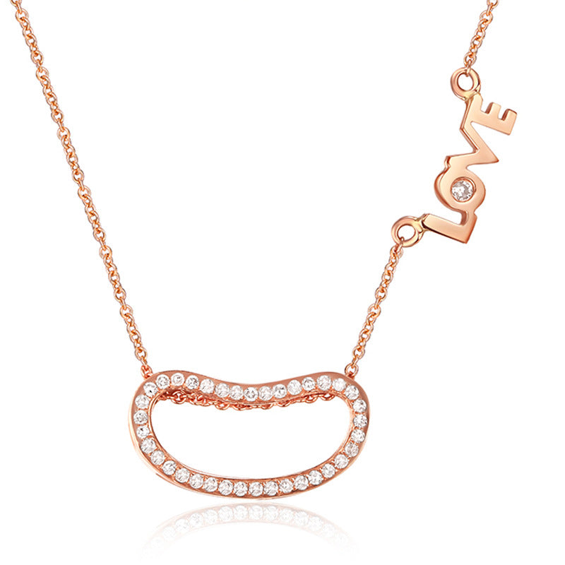 925 Sterling Silver Pendant Necklace Love Letter Round Pendant Rose Gold Chains Necklace For Women HN034