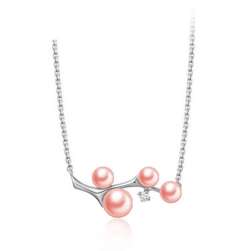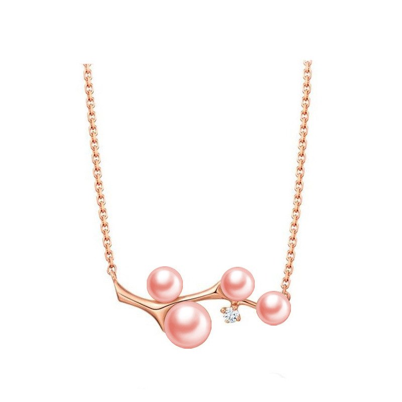 925 Sterling Silver Pendant Necklace with Pearl Branches Rose Gold Chains For Women HN027