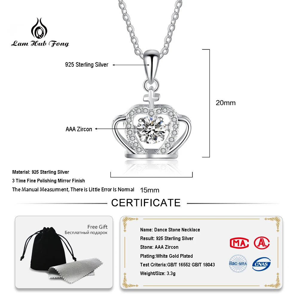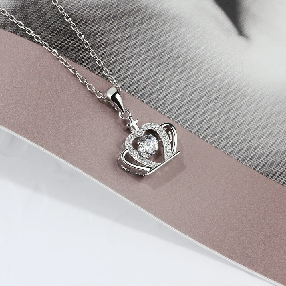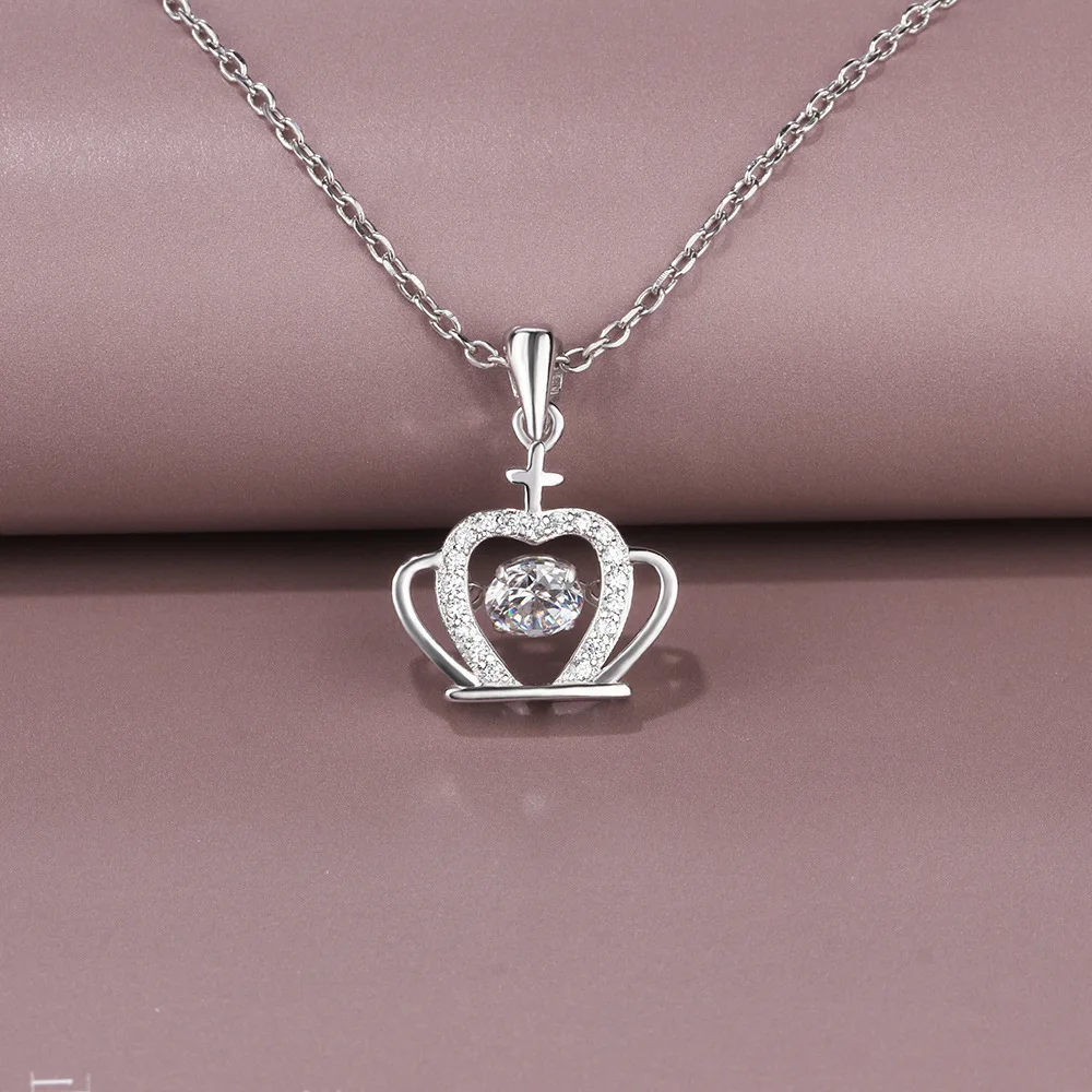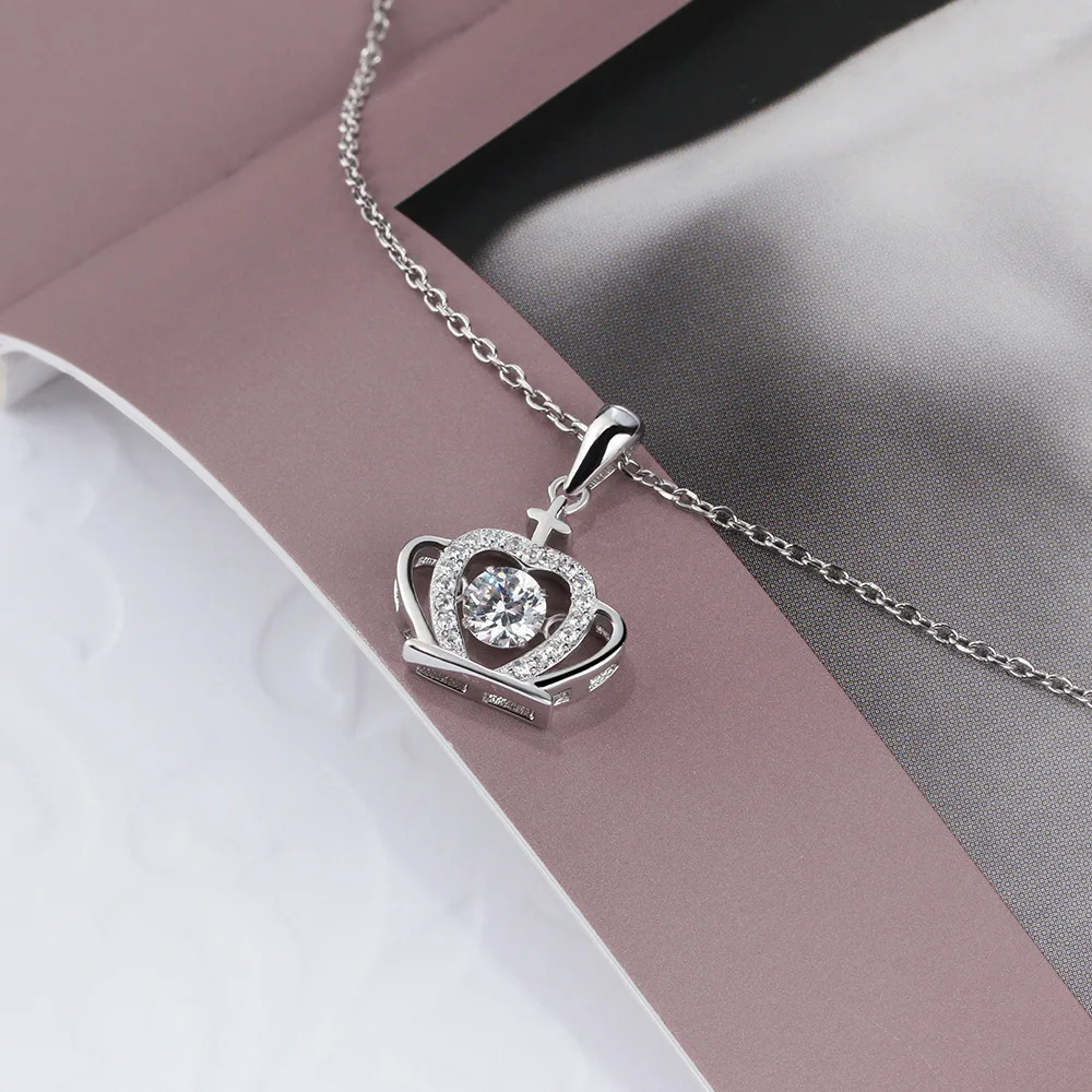 925 Sterling Silver Pendant Necklace Woman Zircon Fine Jewelry Dance Stone Crown Shape Necklace Wedding Engagement Wholesale