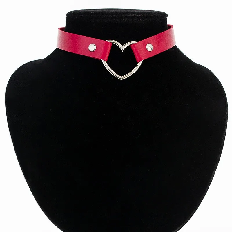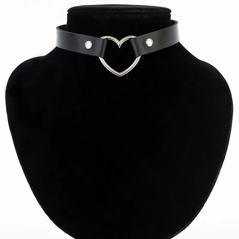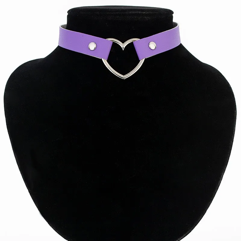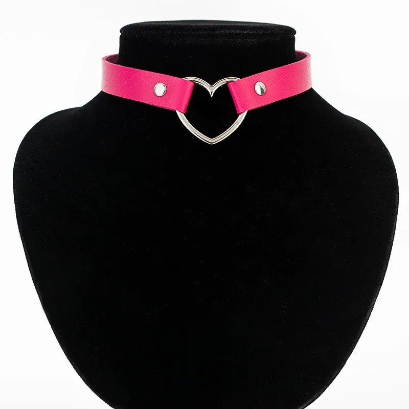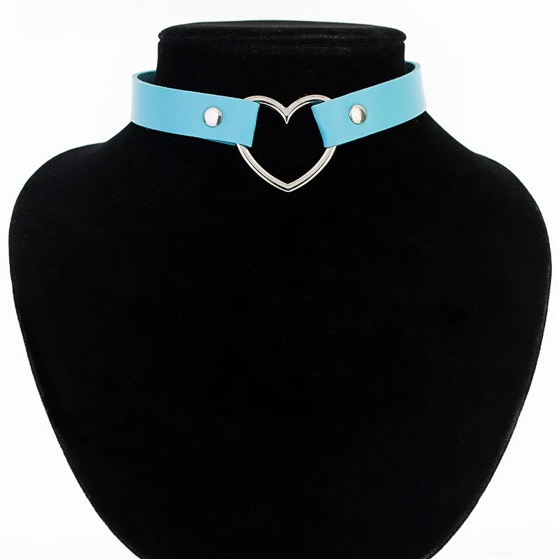 9Color Punk Leather Chokers Necklaces Women Party Heart Shape Pendant Necklace Female Collar Jewelry