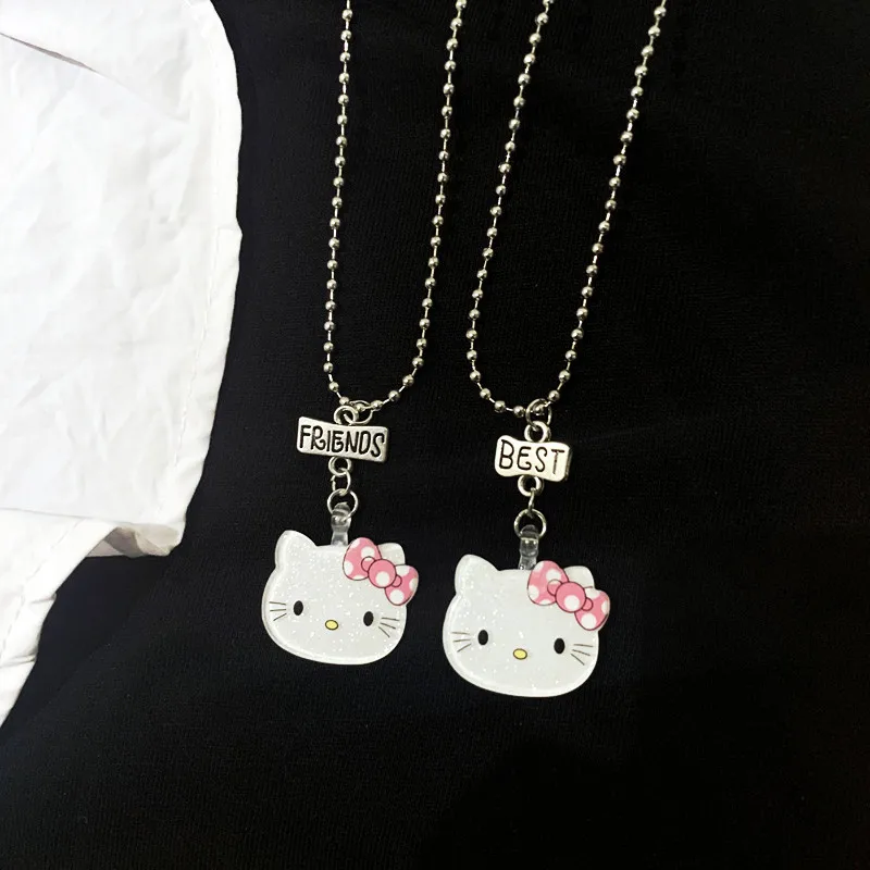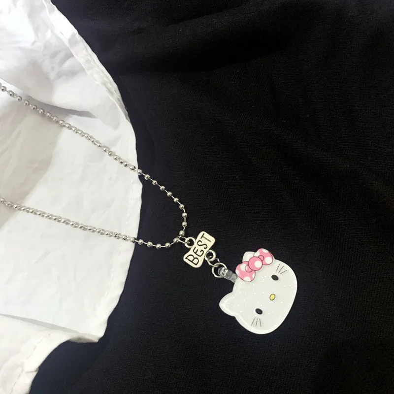 Acrylic Kitty Necklaces Cartoon Animal Hallo Cat Friend Pendant Necklace BFF Friendship Jewelry Gifts For Kids
