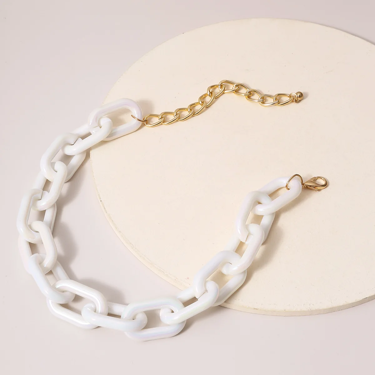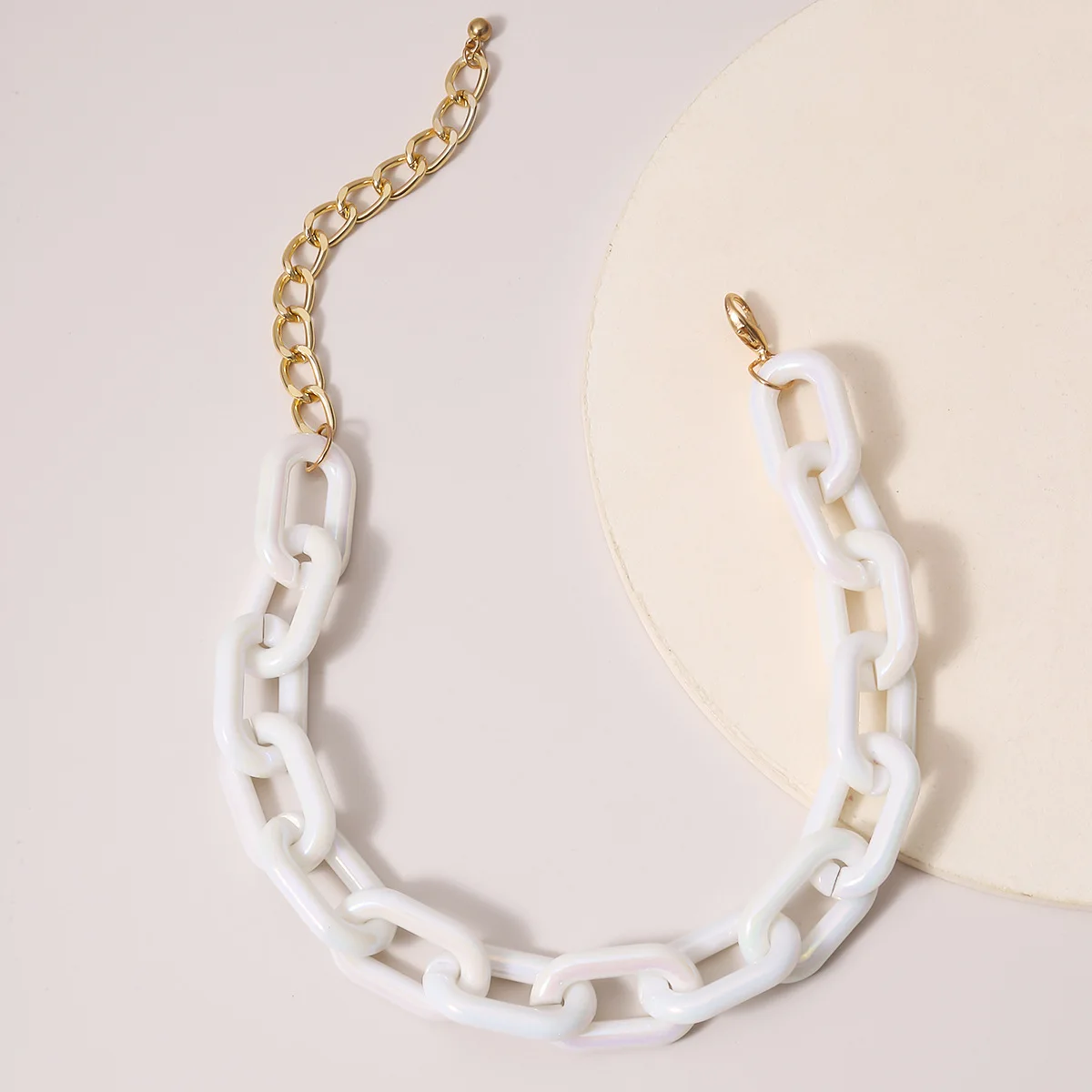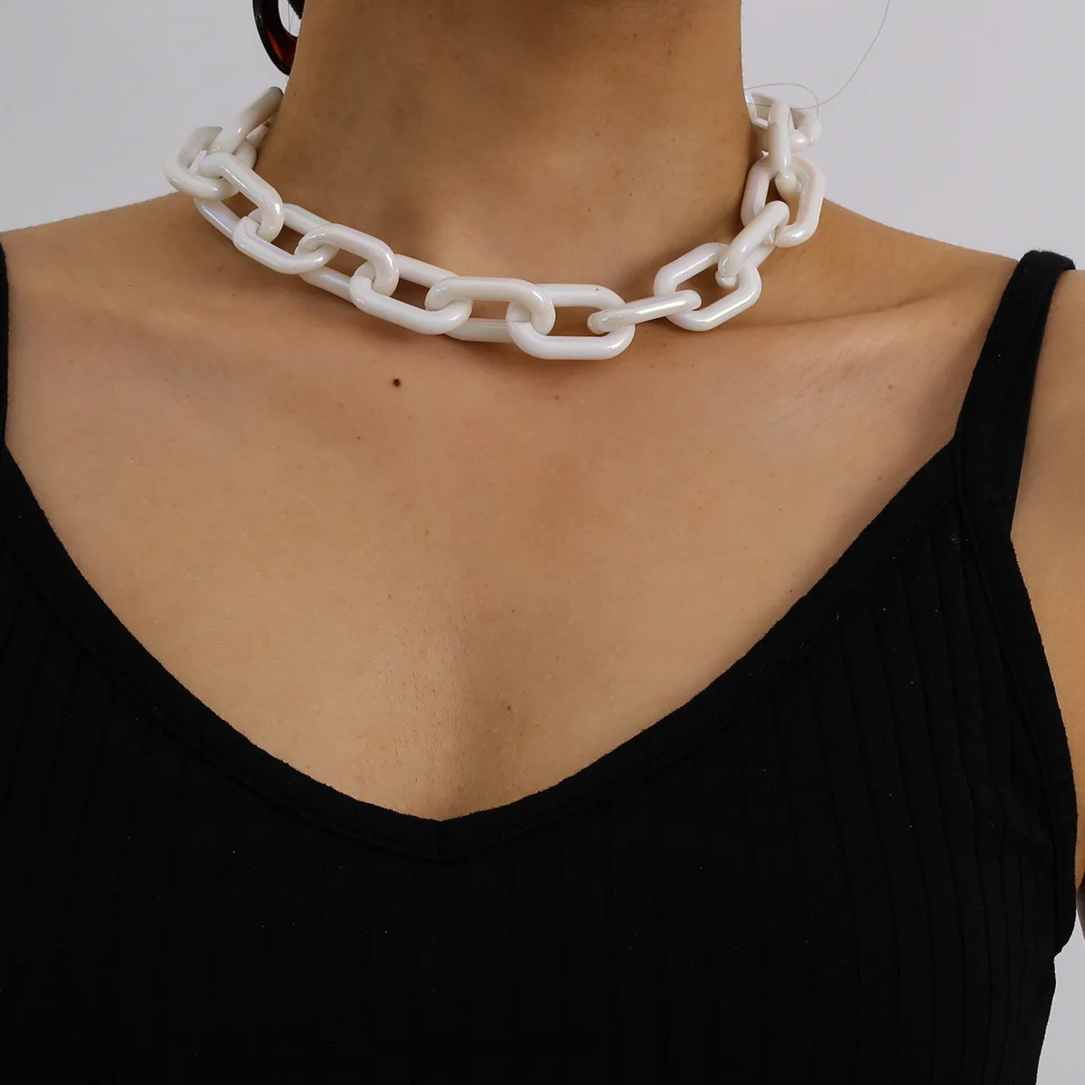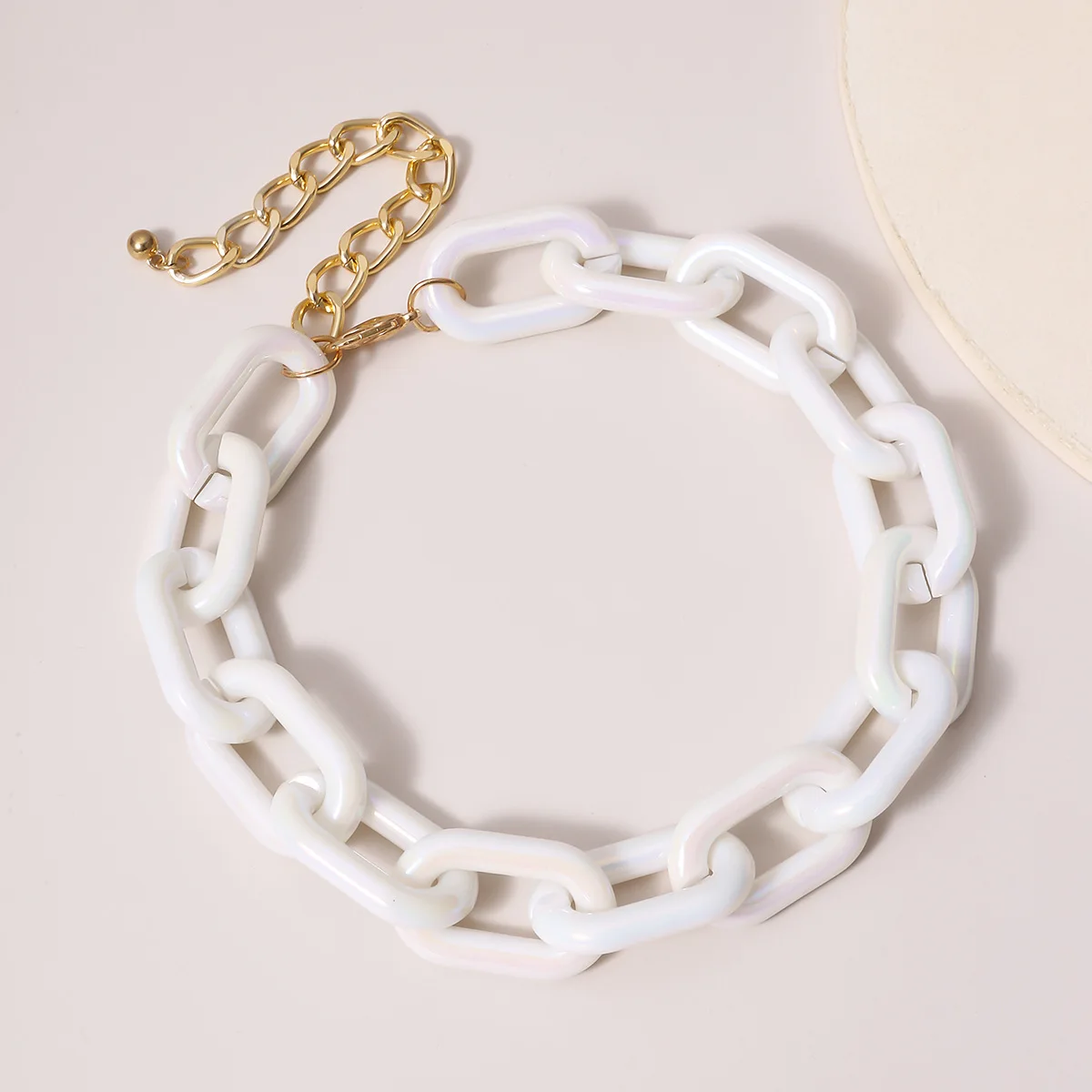Acrylic Short Chain Necklace Bohemian Chunky Lock Plastic Choker Collar Necklace Pendant For Women Bijoux Accessories