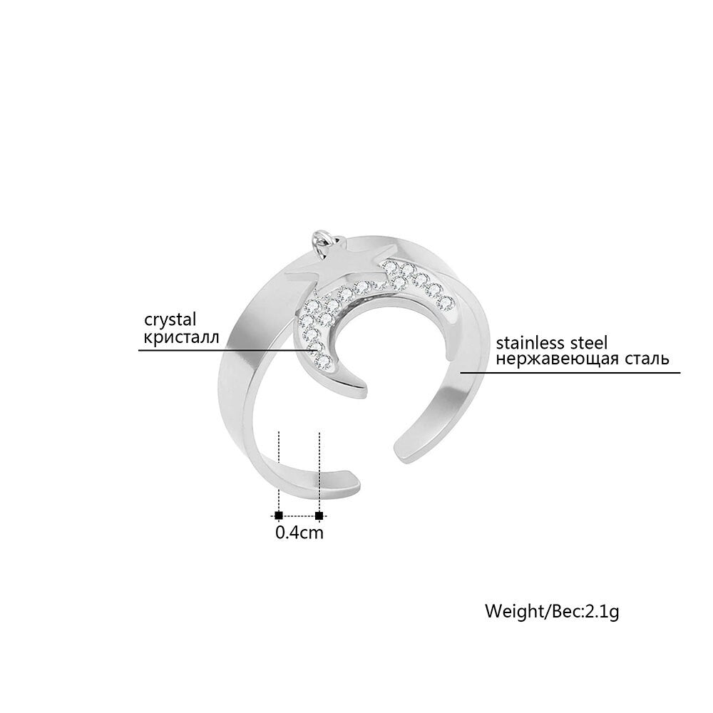 Adjustable Moon And Stars Shaped Pendant Rings For Women Crystal Female Finger Rings Gift For Girlfriend 2022 Jewelry
