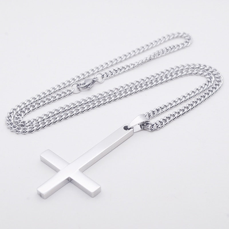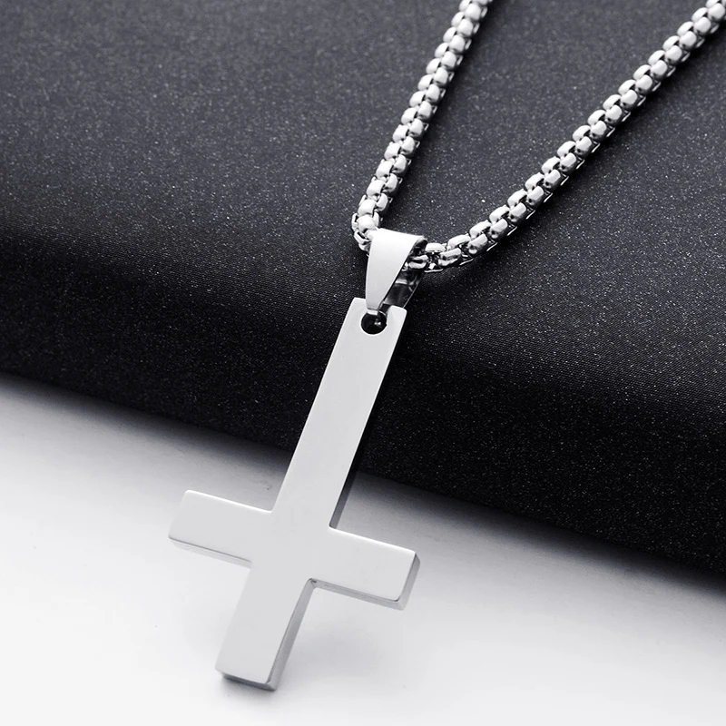 Adjustable Stainless Steel Necklaces For Men Women Inverted Cross Titanium Steel Necklace Gift Punk Necklaces Pendant 1PC