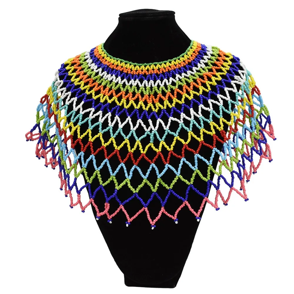 African Ethnic Resin Beaded Necklaces for Women Bohemia Statement Collar Choker Necklaces Lady Gift Gypsy Tribal Jewelry Gift