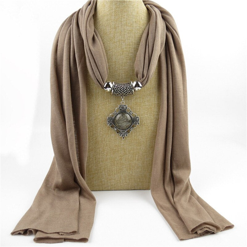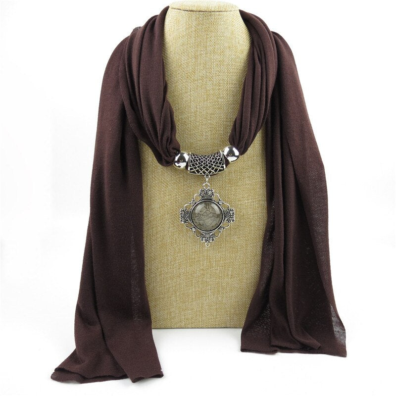 Ahmed Autumn and Winter Resin Geometric Alloy Pendant Scarf Necklace Ethnic Scarve Collar Bijoux Jewelry for Women