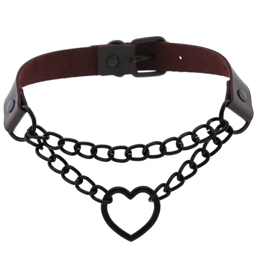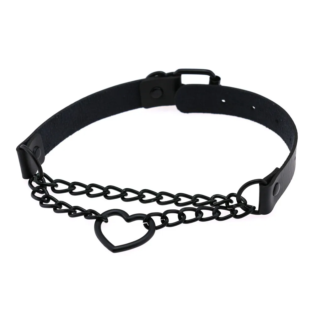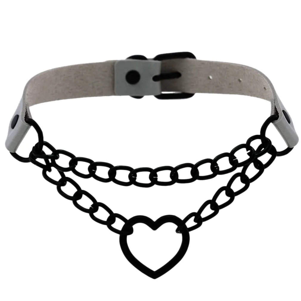 All Black Heart Chain Choker Goth Girls Collar Grunge Style Punk Chokers Harajuku Kawaii Necklace Chocker Halloween Accessories