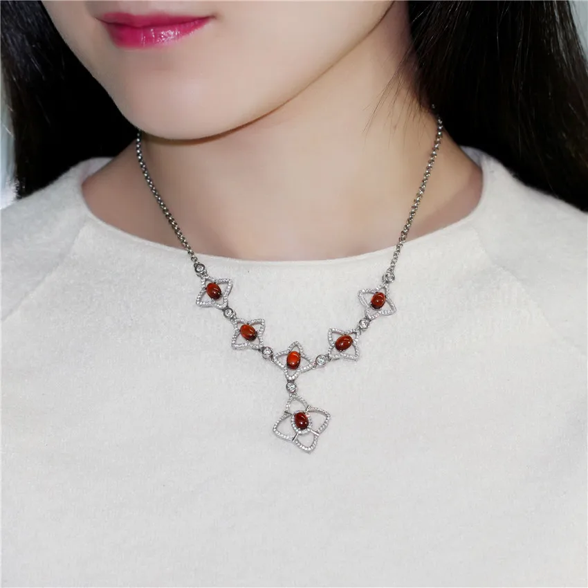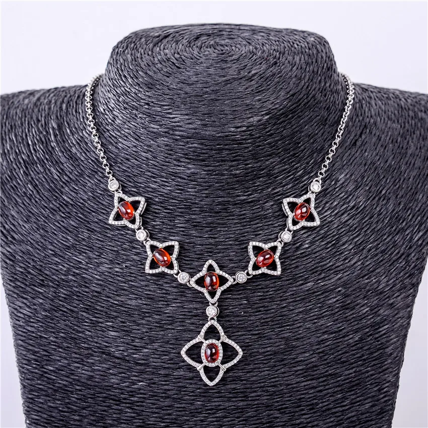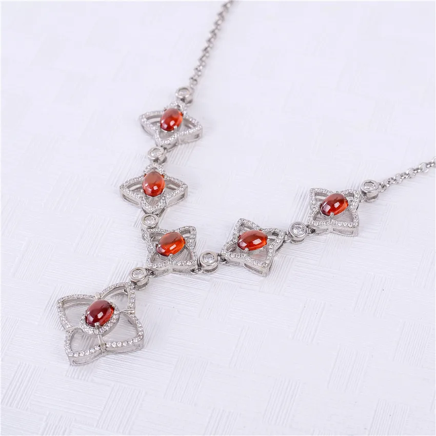 2020 1.2ct Garnet 925 Sterling Silver Stars Chain Necklaces Red Zircon Pendant Wedding Necklace for Women FN031