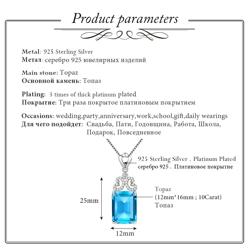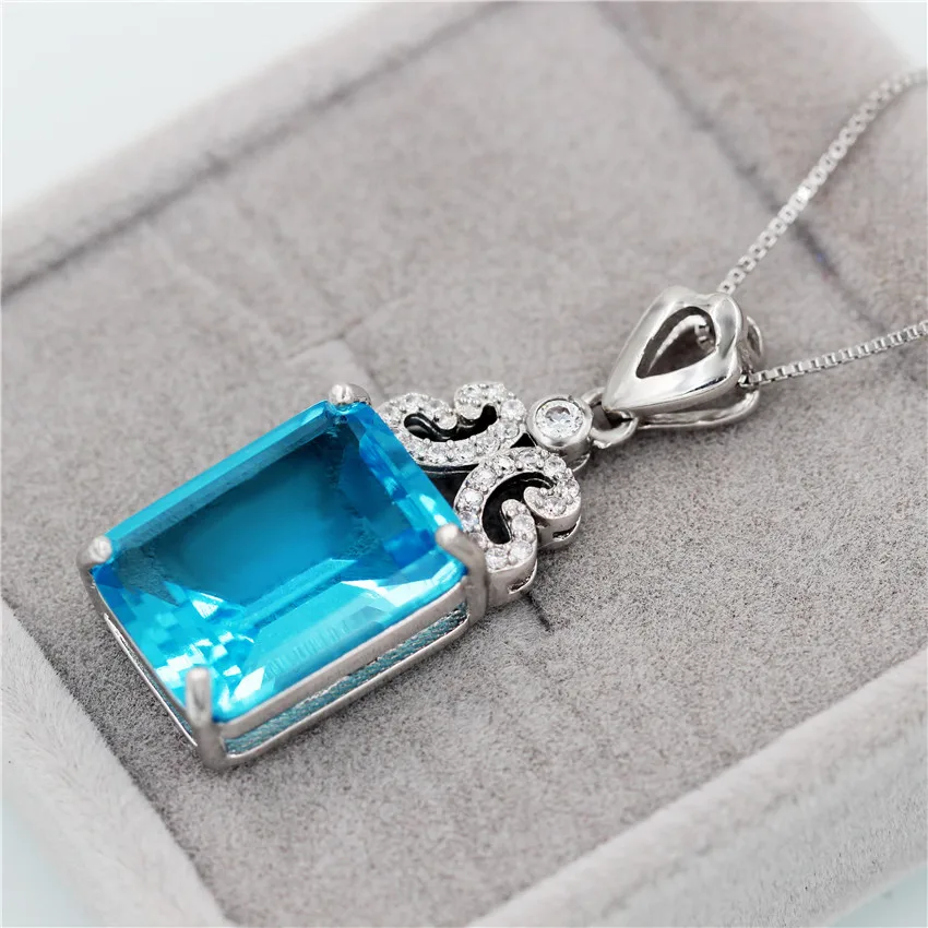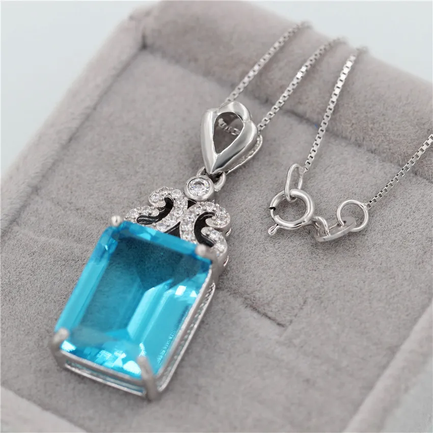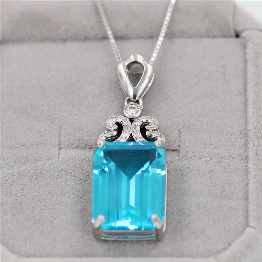 2020 10ct Cushion-Cut Genuine Sky Blue Topaz Pendant Necklace 925 Sterling Silver 45cm Box Chain Fine Jewelry 40% FN005
