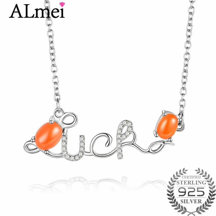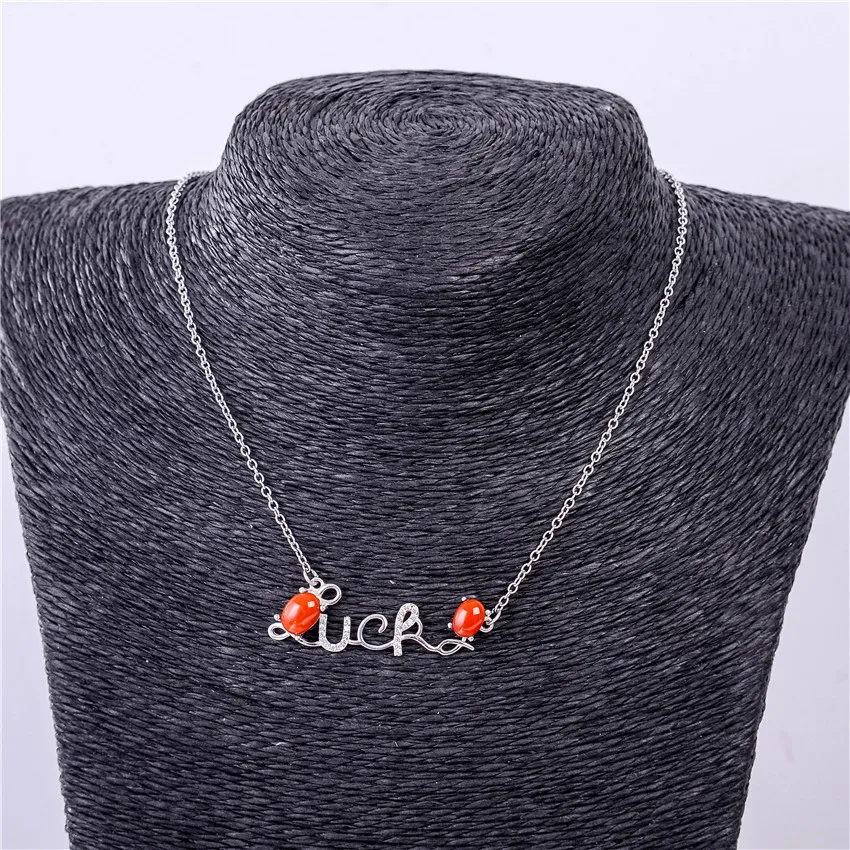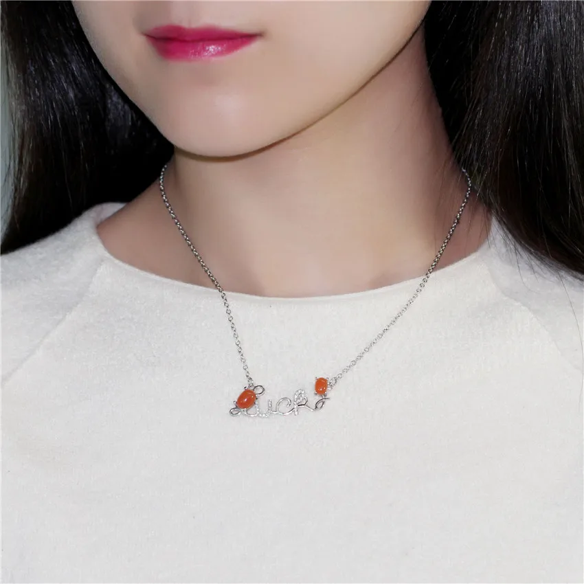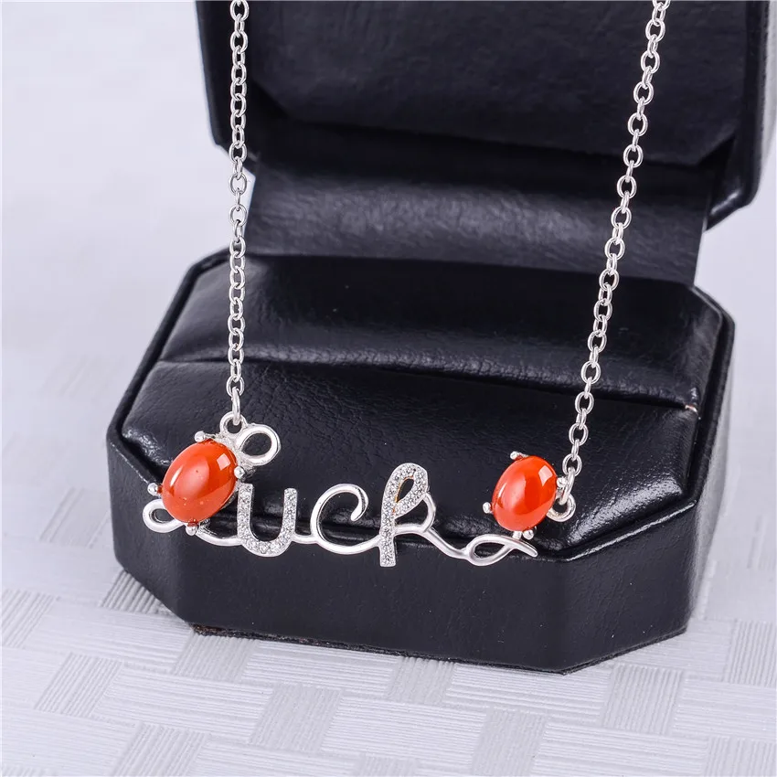 2pcs Garnets Beads LUCKY Words Letter Necklaces Silver 925 Jewelry Bridesmaid Gift Collier Accessories Free Box 40% FN092