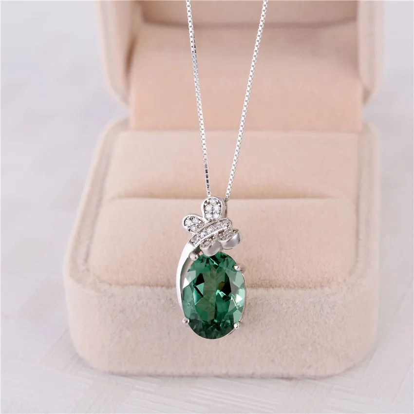 925 Sterling Silver Butterfly Pendant with Green Beads Natural Stone Beads For Women Jewelry Making with Gift Box CN009