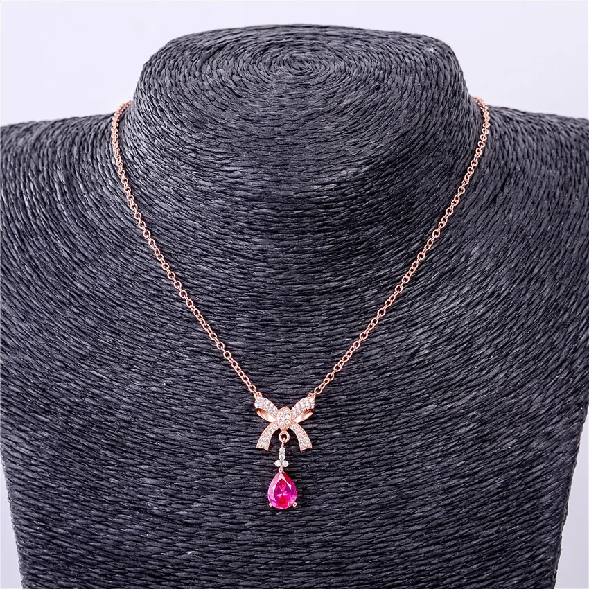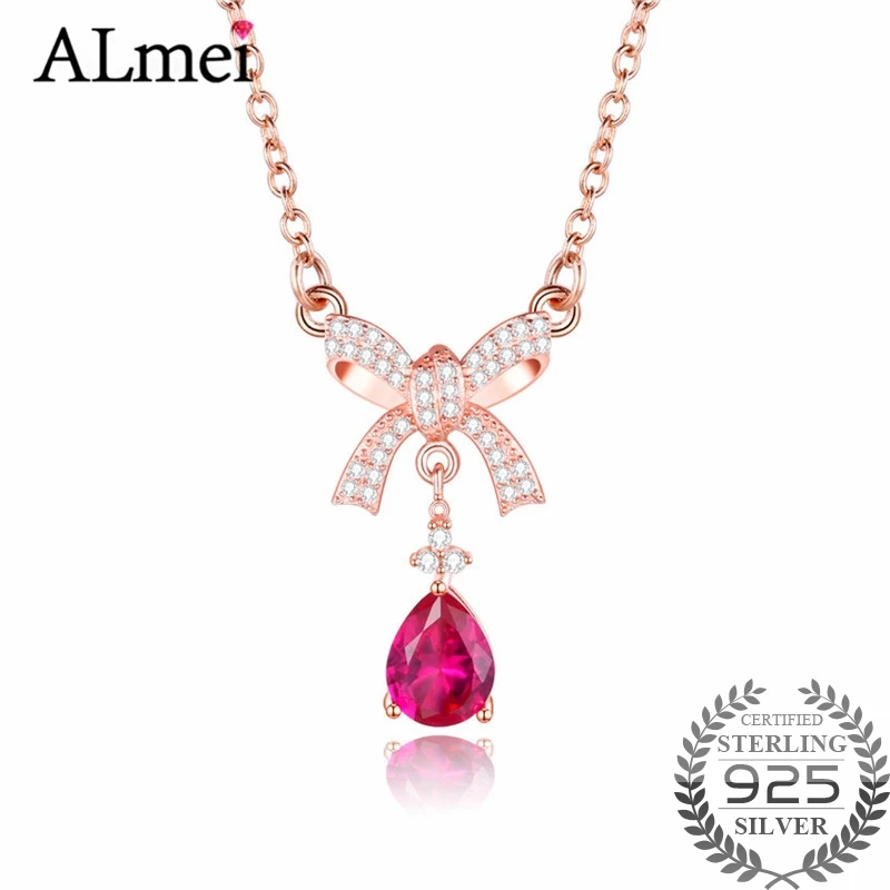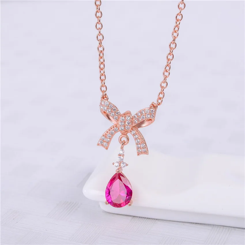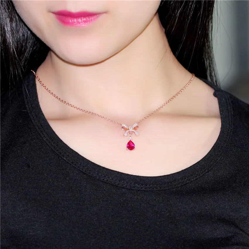 2ct Red Corundum Bow Necklace 925 Sterling Silver Delicate Necklace Bridesmaid Handmade Bow Necklace Free Box 40% FN046