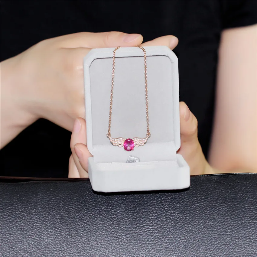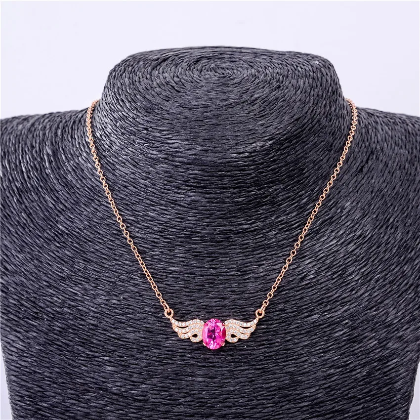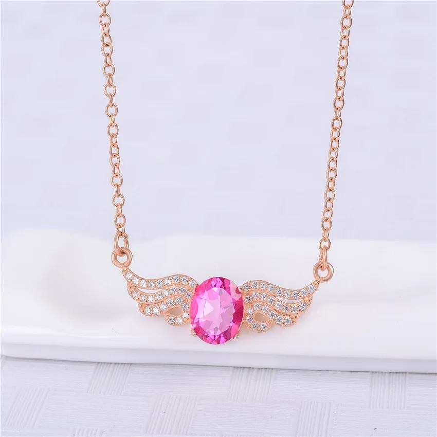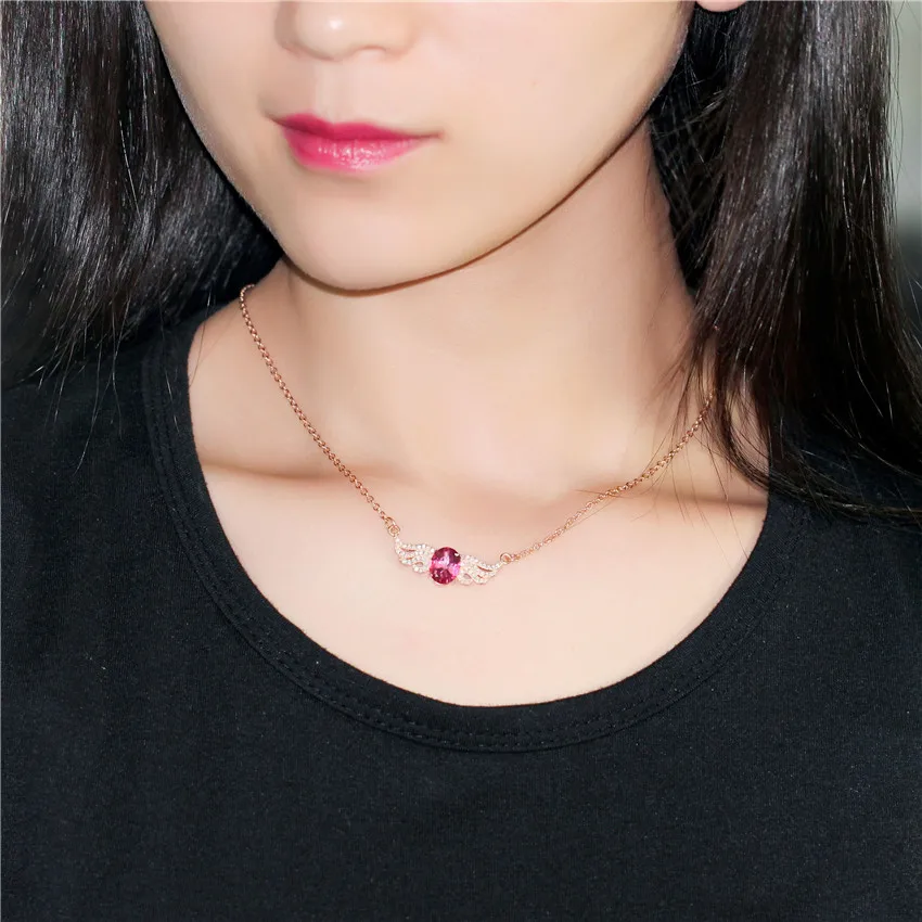 2ct Red Topaz Women Angel Wings Pendant Necklace Silver 925 Rose Gold Color Plated Wedding Party Jewelry with Box 40%FN055