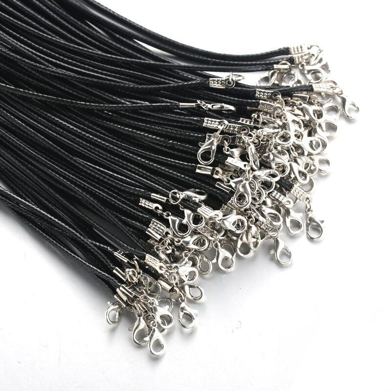 Alta calidad negro 60CM trenzado collares de cuerda de broche de langosta cuerda cadena 20 unids/lote langosta cierre cable cadena 9665