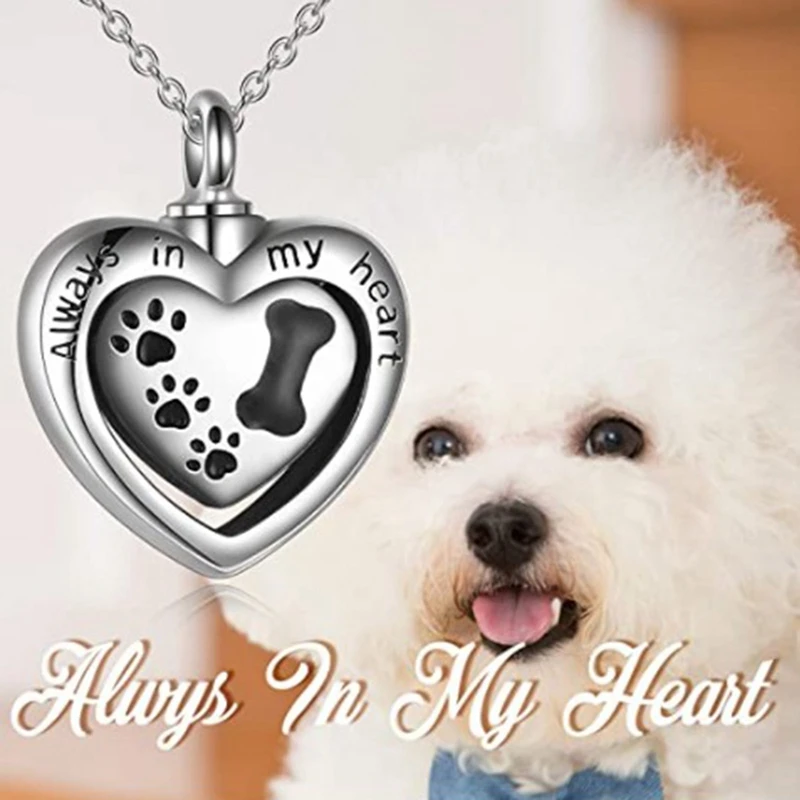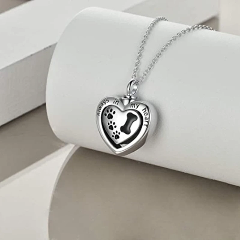 Always in My Heart Pet Paw Dog Bone Cremation Heart Urn Necklace For Dog Ash Jewelry Memorial Keepsake Pendant Jewelry