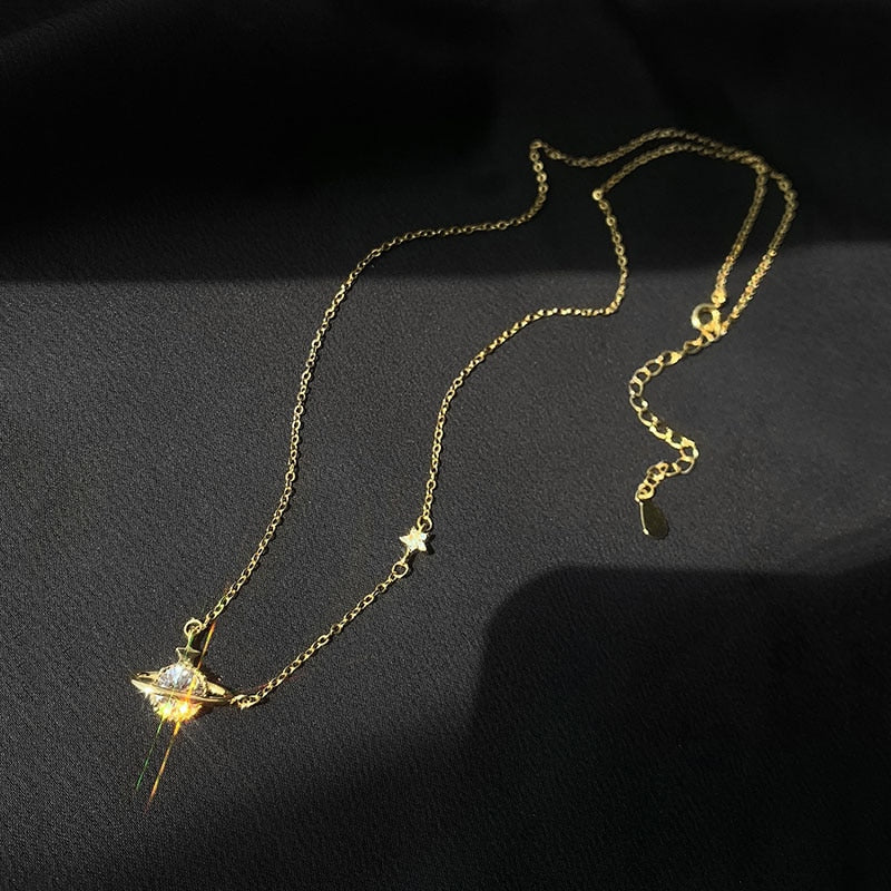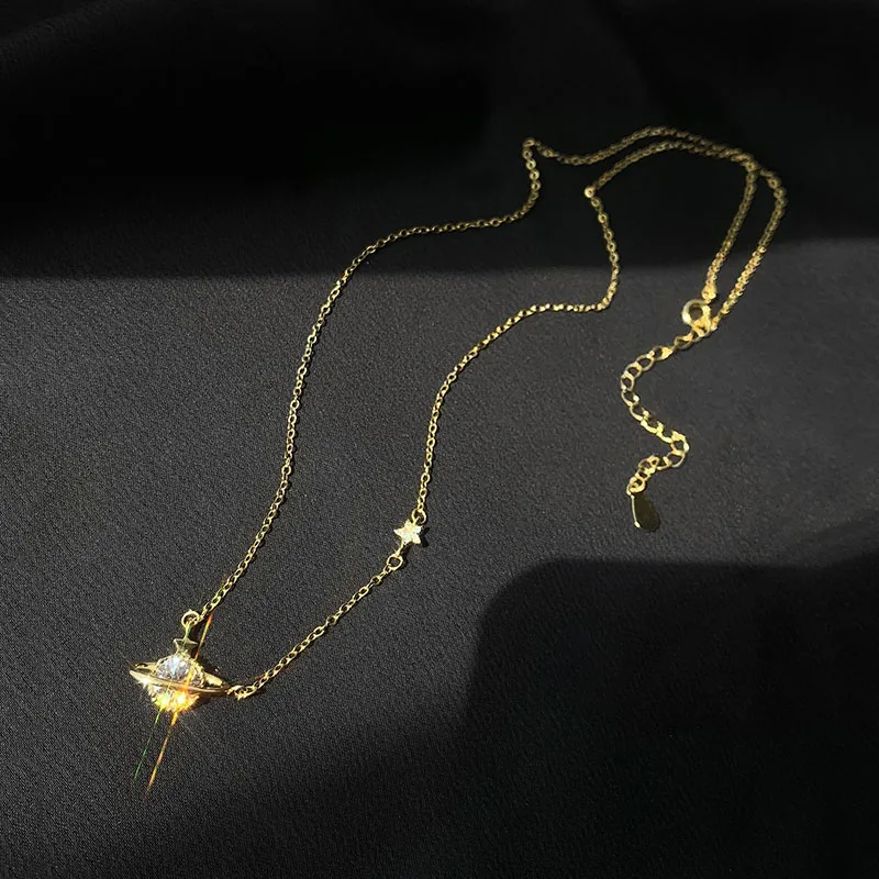 ANENJERY 925 Sterling Silver Sparkling Cubic Zircon Inlaid Planet Necklace for Women Exquisite Clavicle Chain S-N710