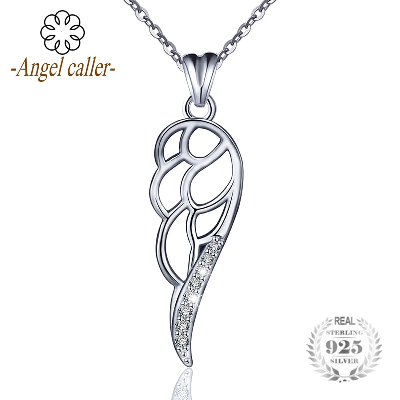 Real 925 Sterling Silver CZ Angel Wing Pendant Necklace 18inch Rolo Chain Fine Jewelry for Women 2020 New CYD135