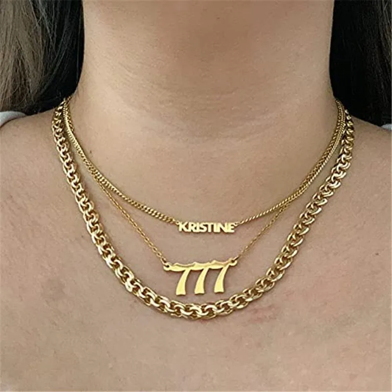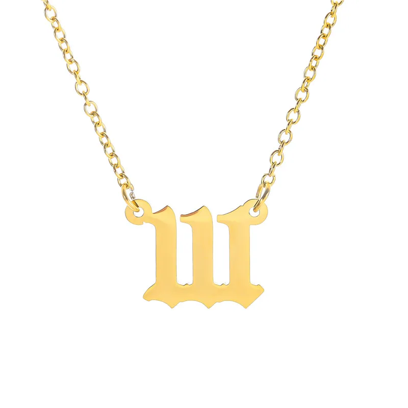 Angel Number Gold Necklace Simple Design 111 222 333 444 555 666 777 888 999 Pendant Choker Necklace for Women Jewelry