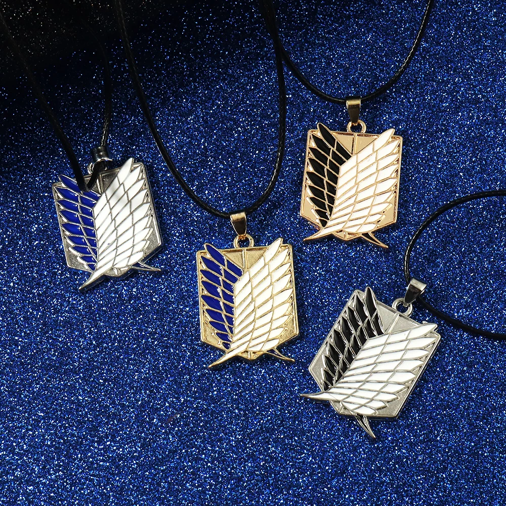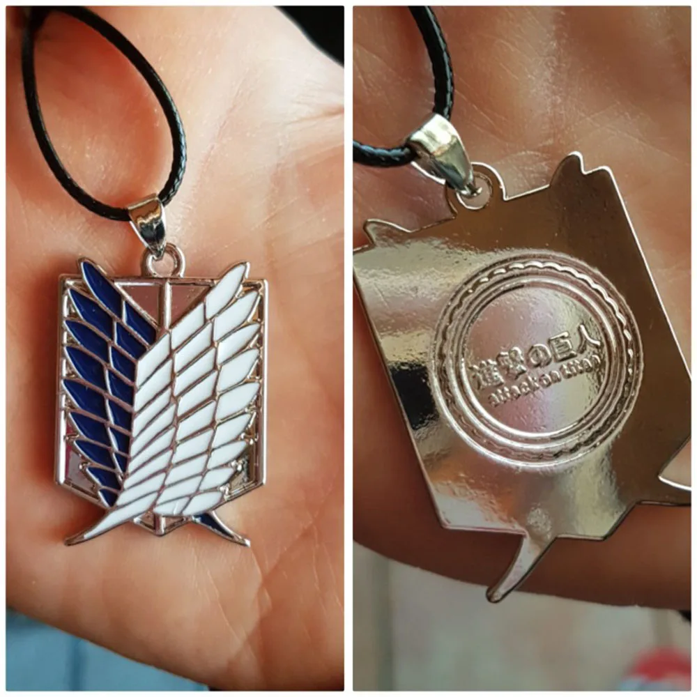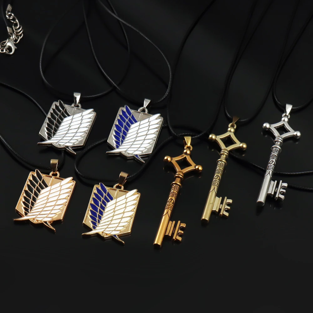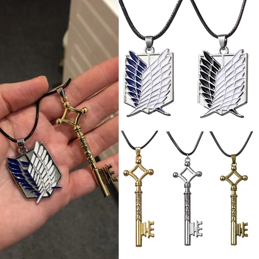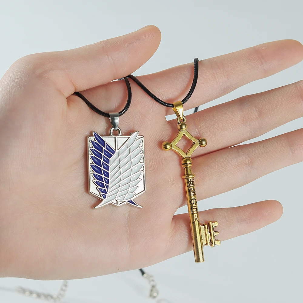 Anime Attack on Titan Cosplay Necklace Eren Jaeger Key Levi Survey Corps Logo Pendant Necklace Fans Collection Gift