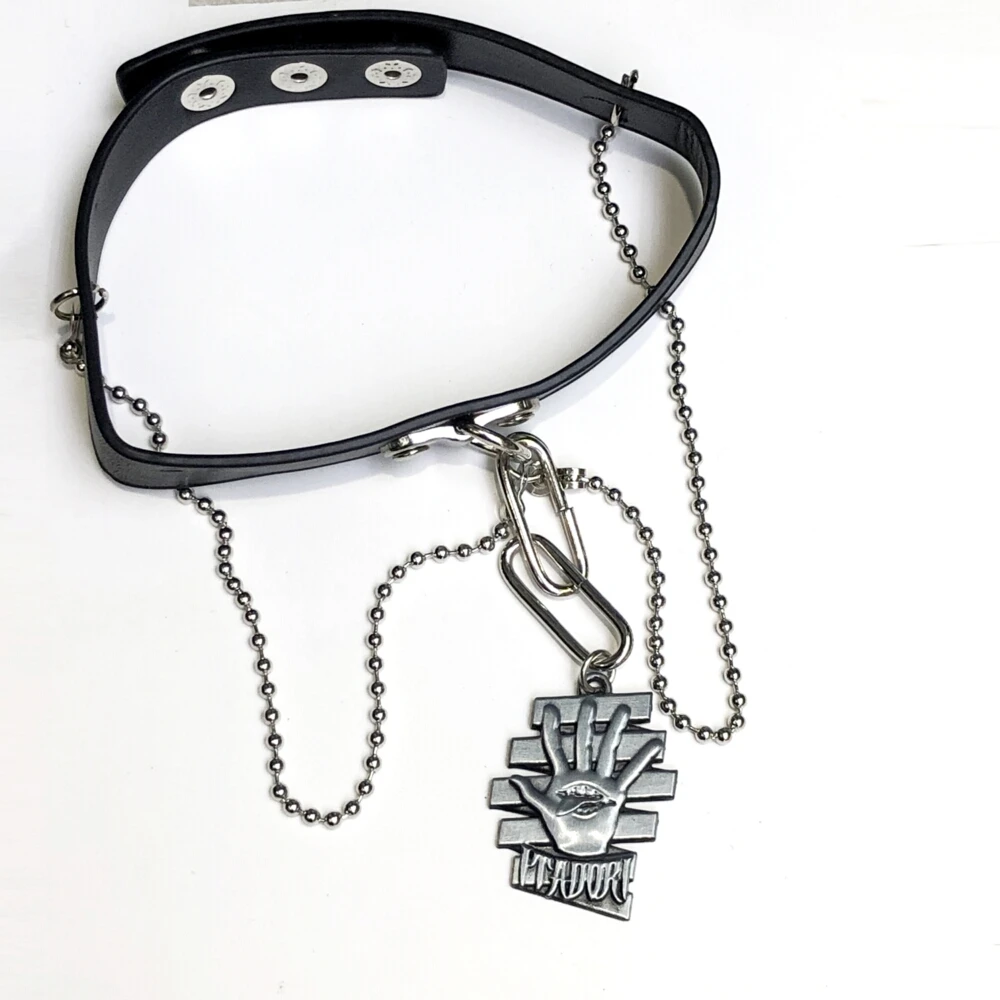 Anime Jujutsu Kaisen Itadori Yuji Cosplay metal Figure Pendant Black PU Chokers chain accessories Necklace Gift