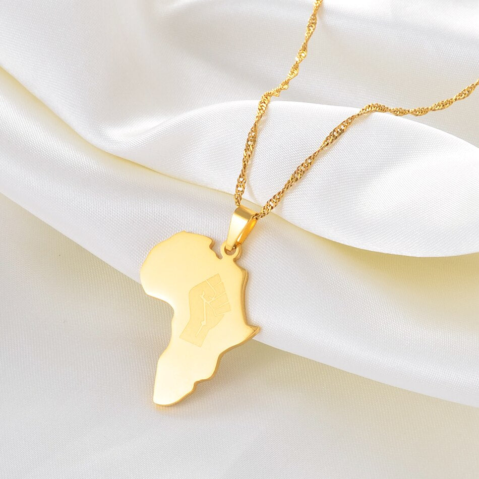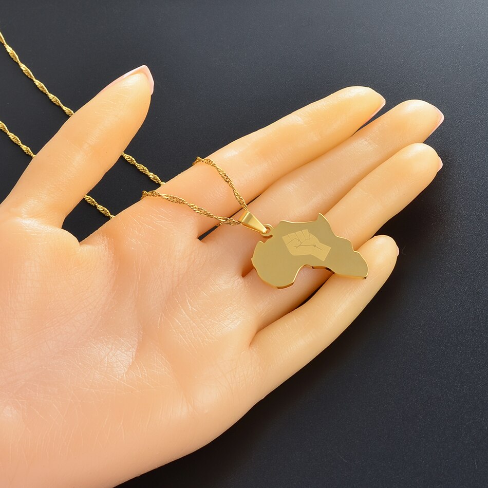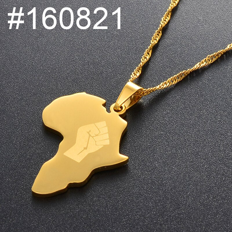 Anniyo Africa Map With Fist Pendant Necklaces Women Men Black Lives Matter African Jewelry #160821