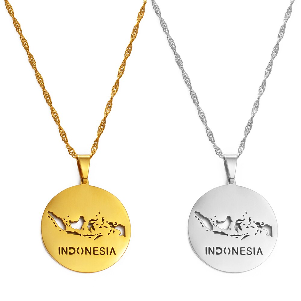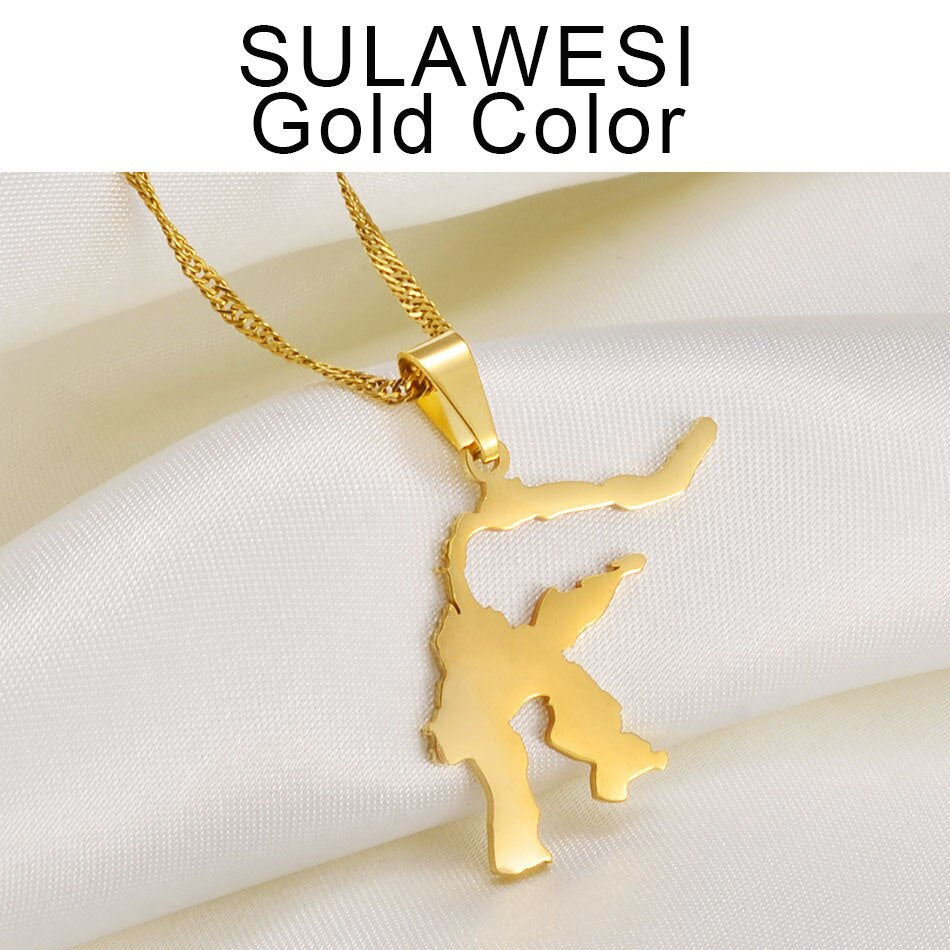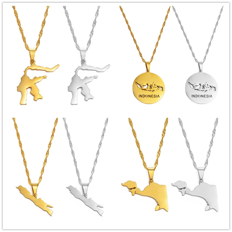 Anniyo Indonesia Map Pendant Neckalces and Sumatra,Sulawesi,Java,West Papua,Kalimantan Island Jewelry #174721