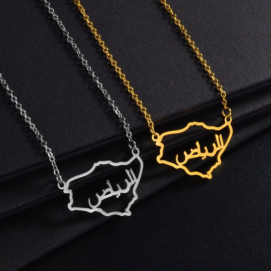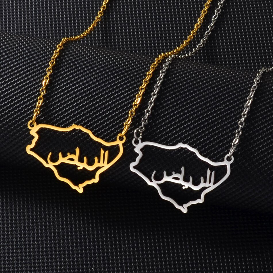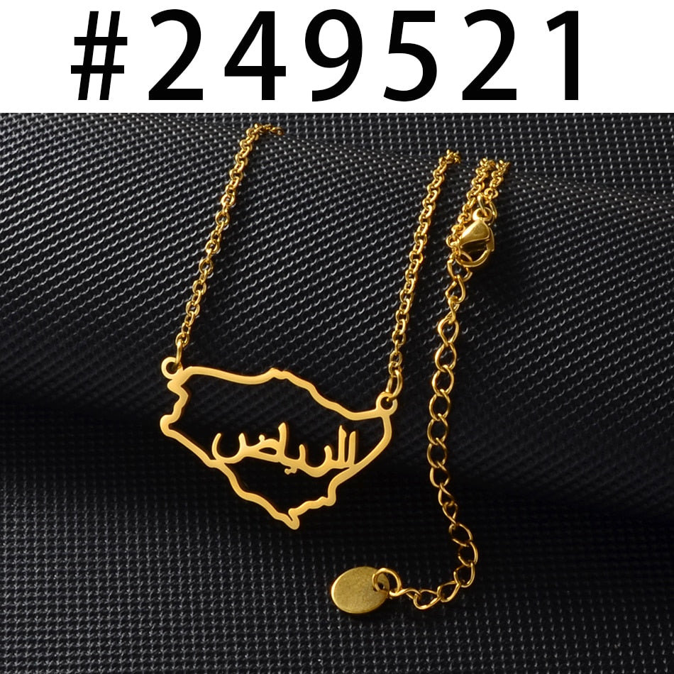 Anniyo Outline Saudi Arabia Map Charm Pendant Necklace Kingdom of Saudi Arabia Jewelry Women Girls #249521