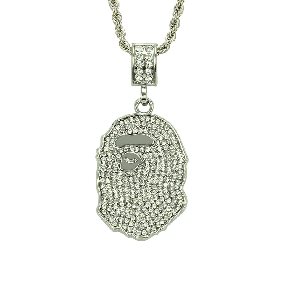 Ape Zircon Pendant Necklace Gothic Hip Hop Spirit Titanium Stainless Steel Chain Necklace Neck Chain Men's Jewelry Year Gift