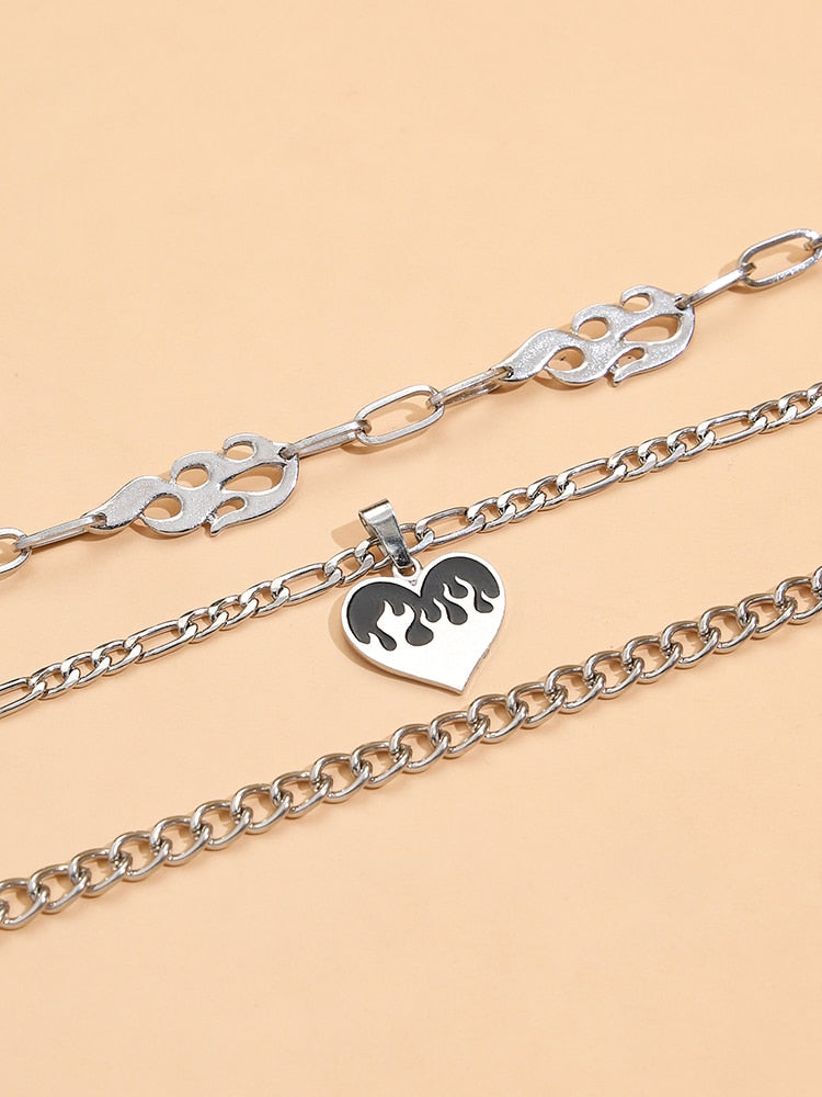 Aprilwell 3PCs Love Flame Gothic Necklace For Women Aesthetic Stainless Steel Choker Chain 2021 Y2k Jewelry Gift For Girl Friend