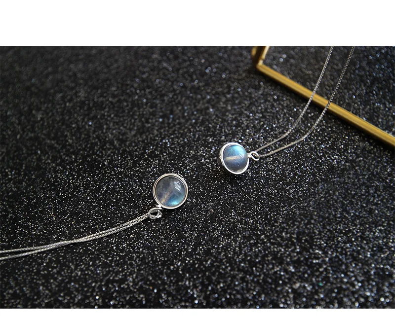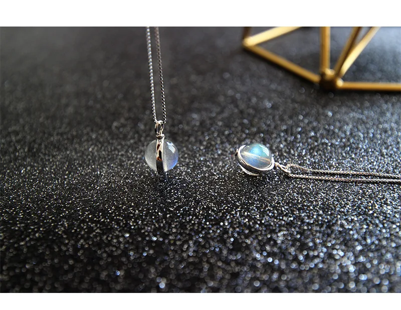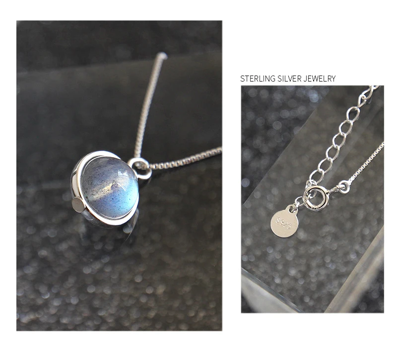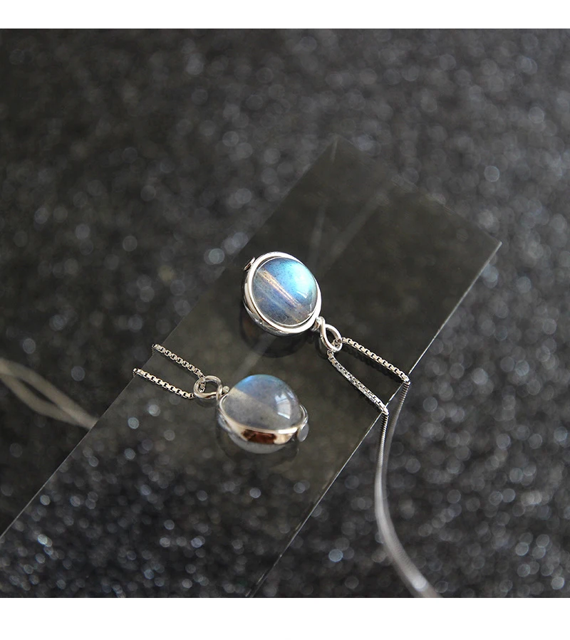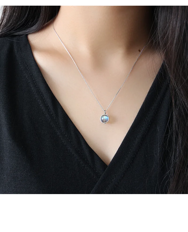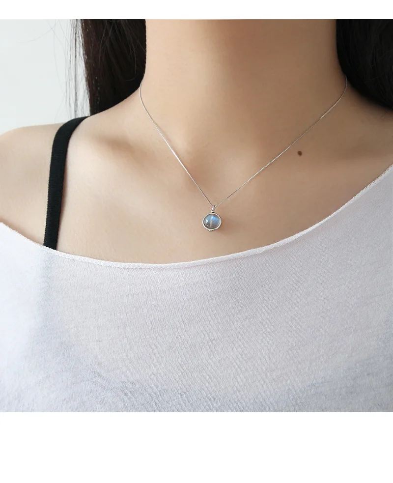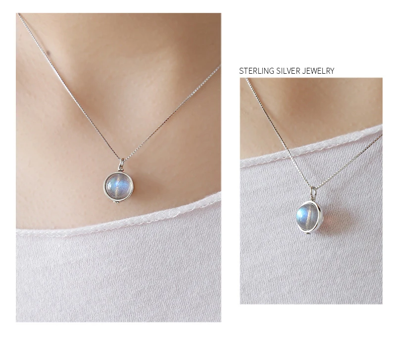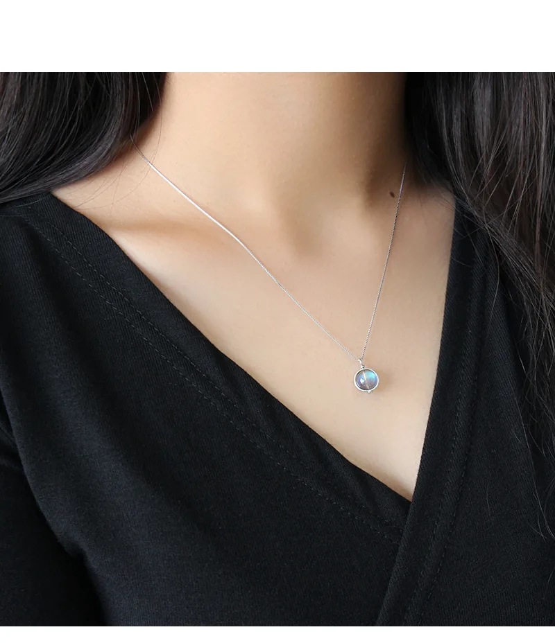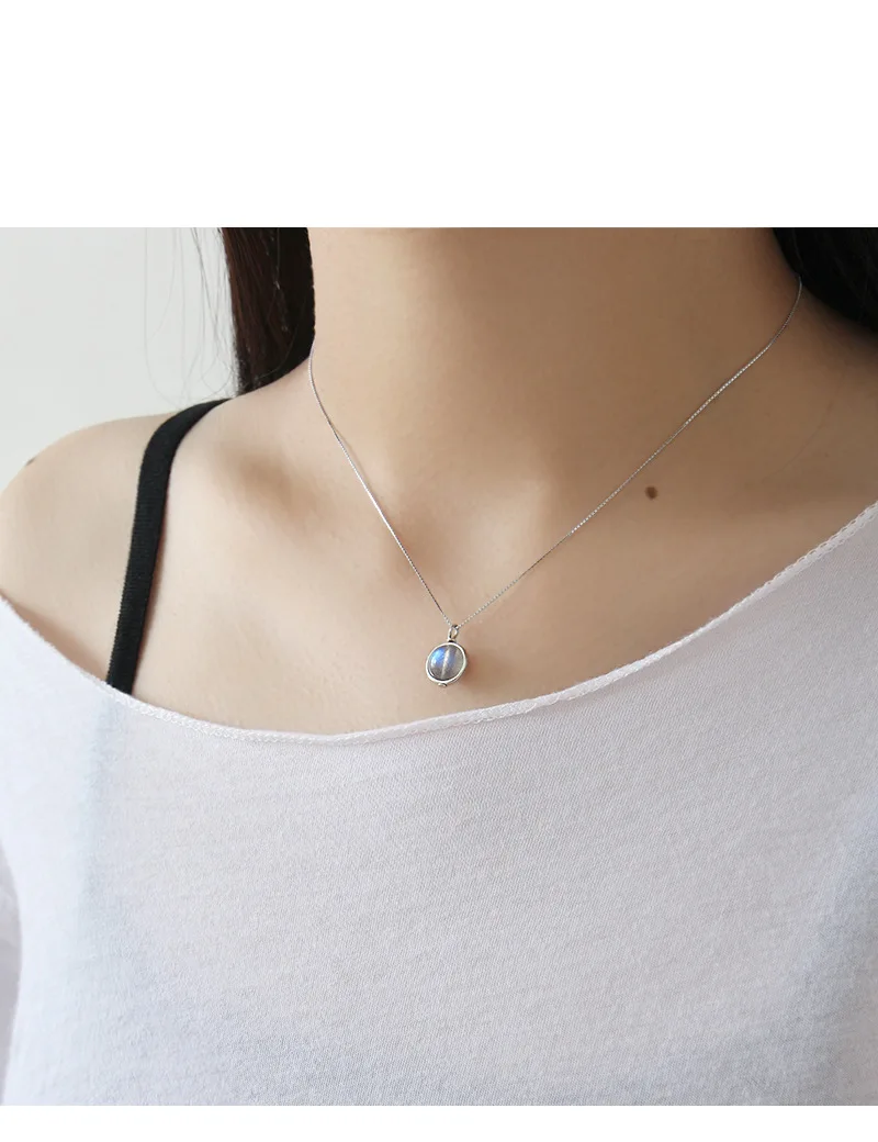 AsinLove Natural Moonstone Scroll Round Bead Pendants Necklaces For Women Gift Real 925 Silver Chain Simple Fine Jewelry