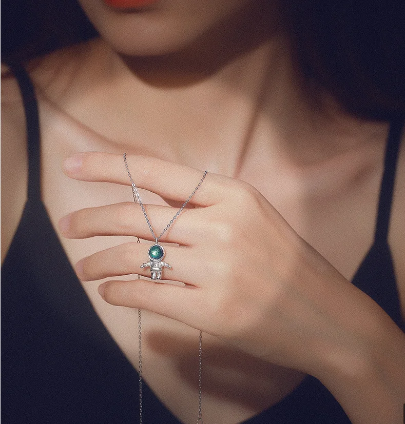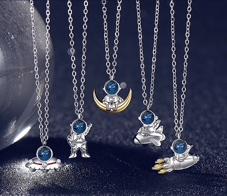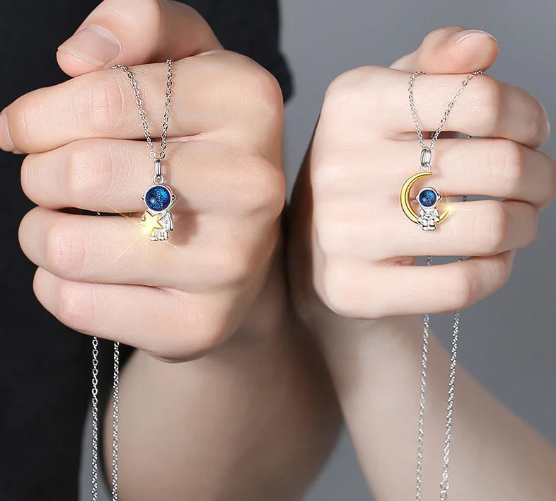 Astronaut Alloy Couple Necklace Female Commemorative Gift Light Niche Pendant Cartoon Exquisite Clavicle Chain