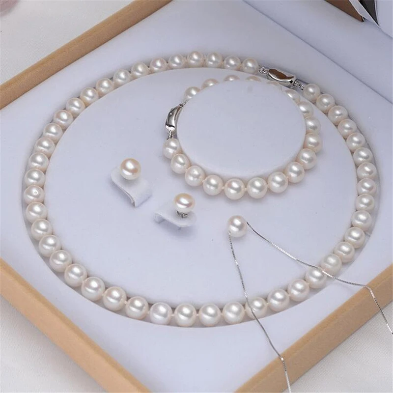 9-10MM Natural Pearls Maxi Statement Necklace +Bracelet+Earring Jewelry for Women Collier Colar NFP003