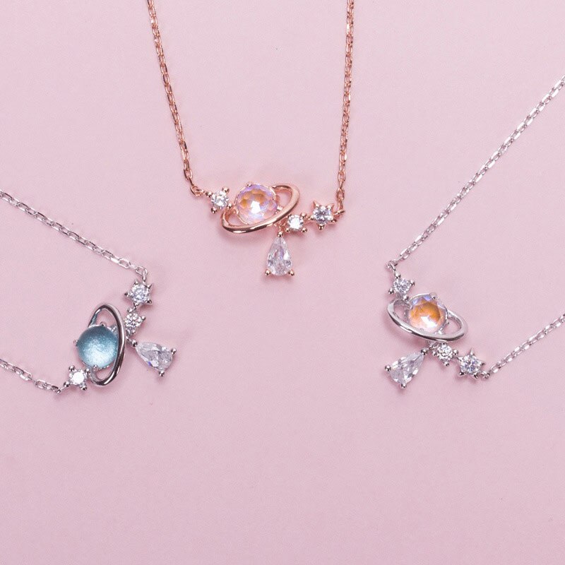 Aurora Water Drop Star Moon Necklace Cute Girl Clavicle Chain Heart Sweet Student Necklace