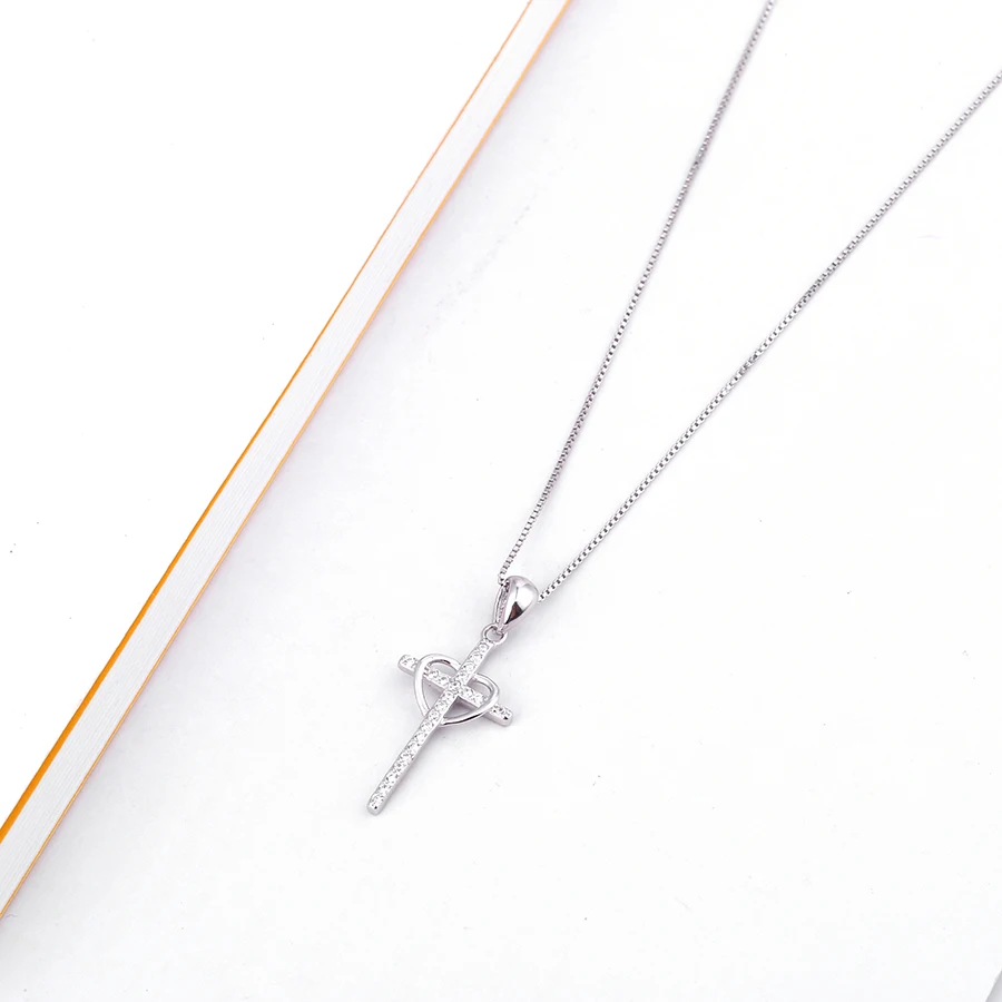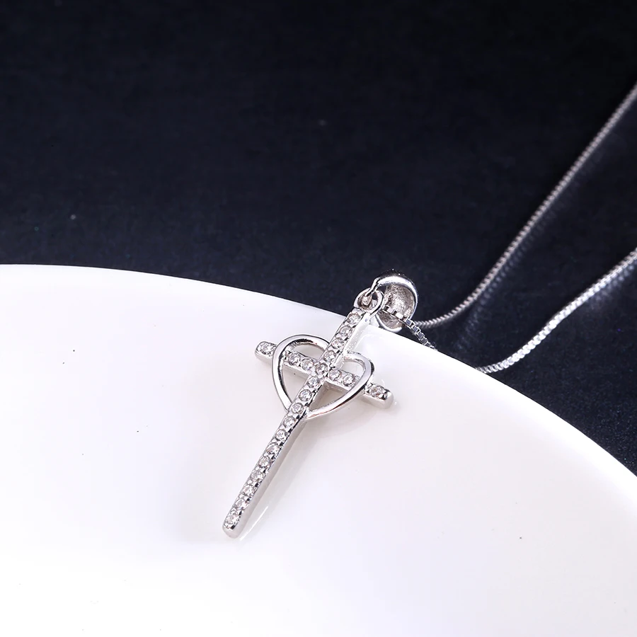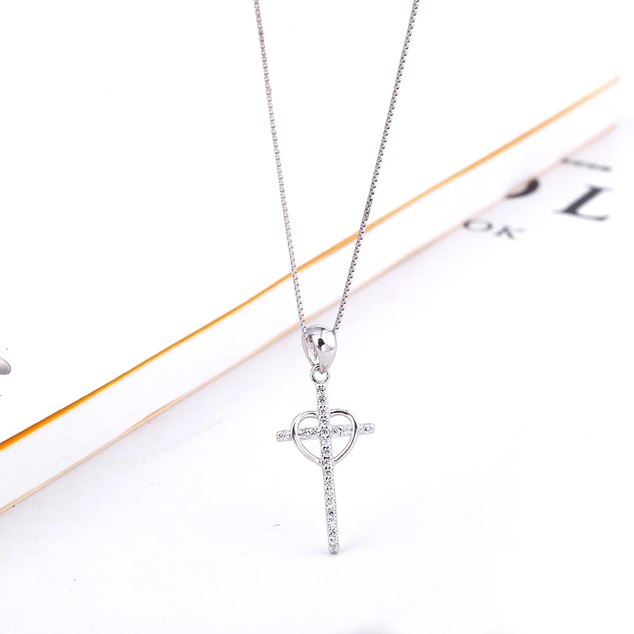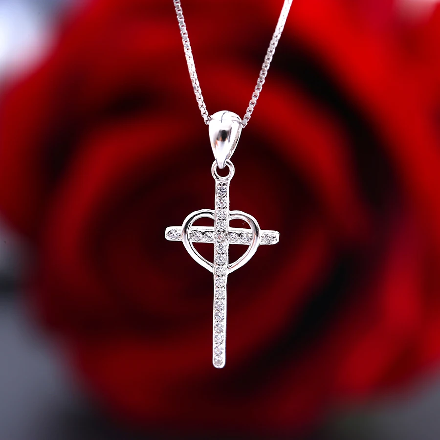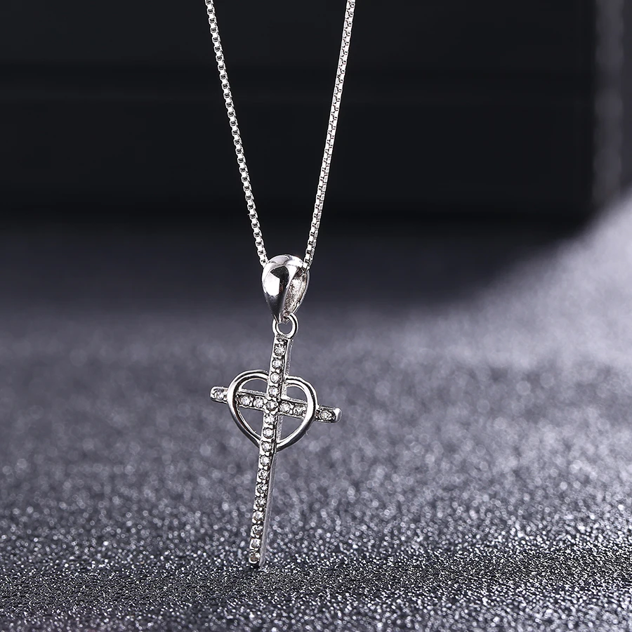 Authentic 100% 925 Sterling Silver heart with Cross Necklaces Pendant Jewelry Fashion Women Statement Necklace 2020 cross new