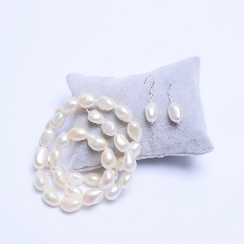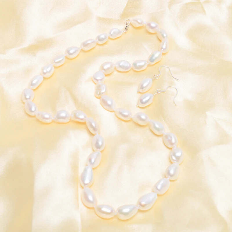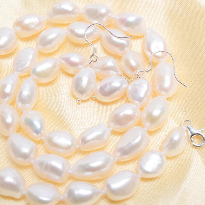 Baroque Natural pearl Jewelry Sets Real pearl Necklace 925 Sterling Silver Earrings for women New