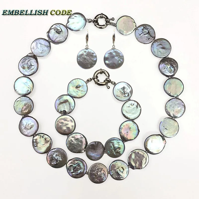 baroque pearl choker statement necklace bracelet bangle hook earrings set gr colorful round coin flat shape big size pearls