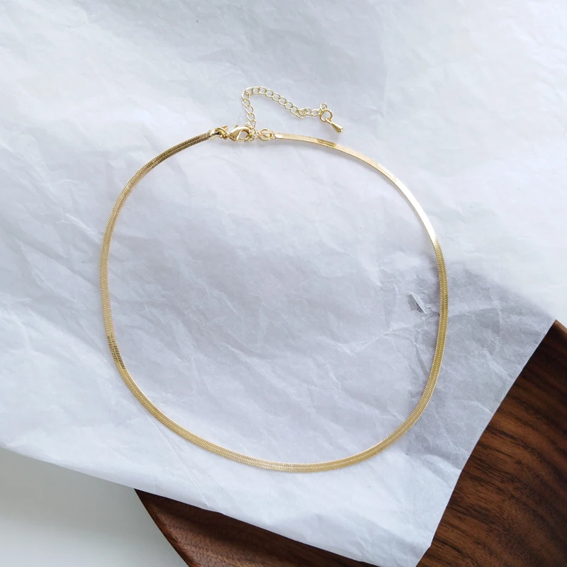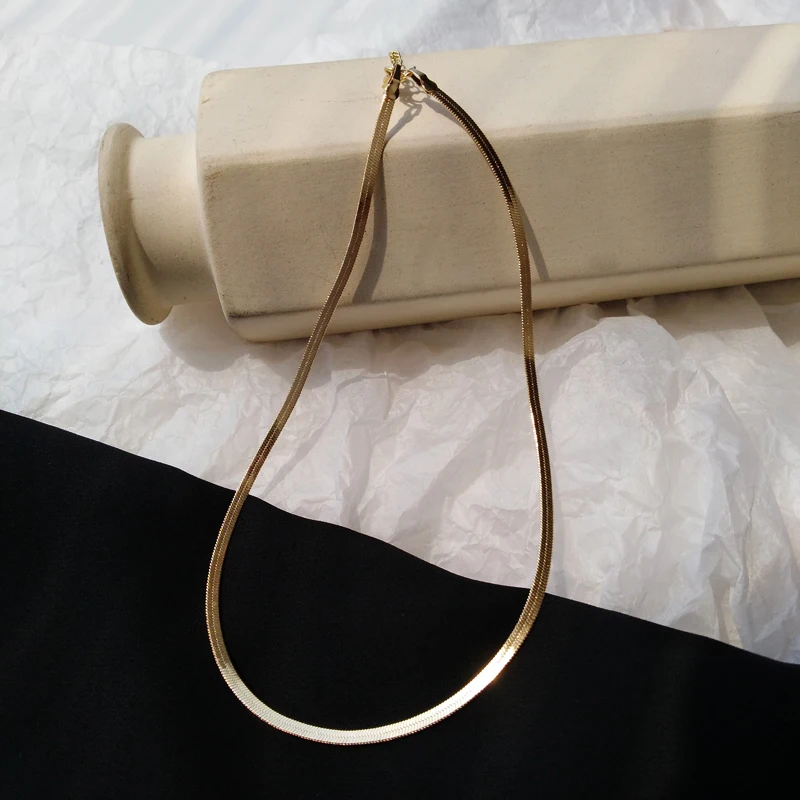 Basic Jewelry Trendy Necklace Creative Flat Snake Chain Choker Temperament Collarbone Herringbone Chain Necklaces 1280