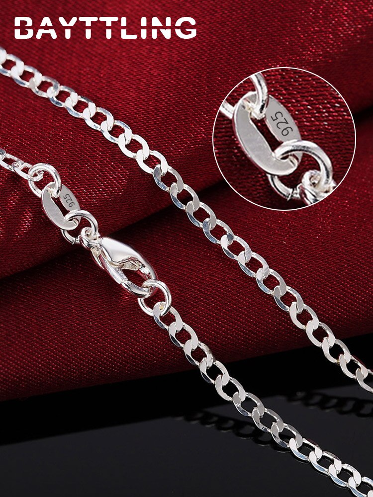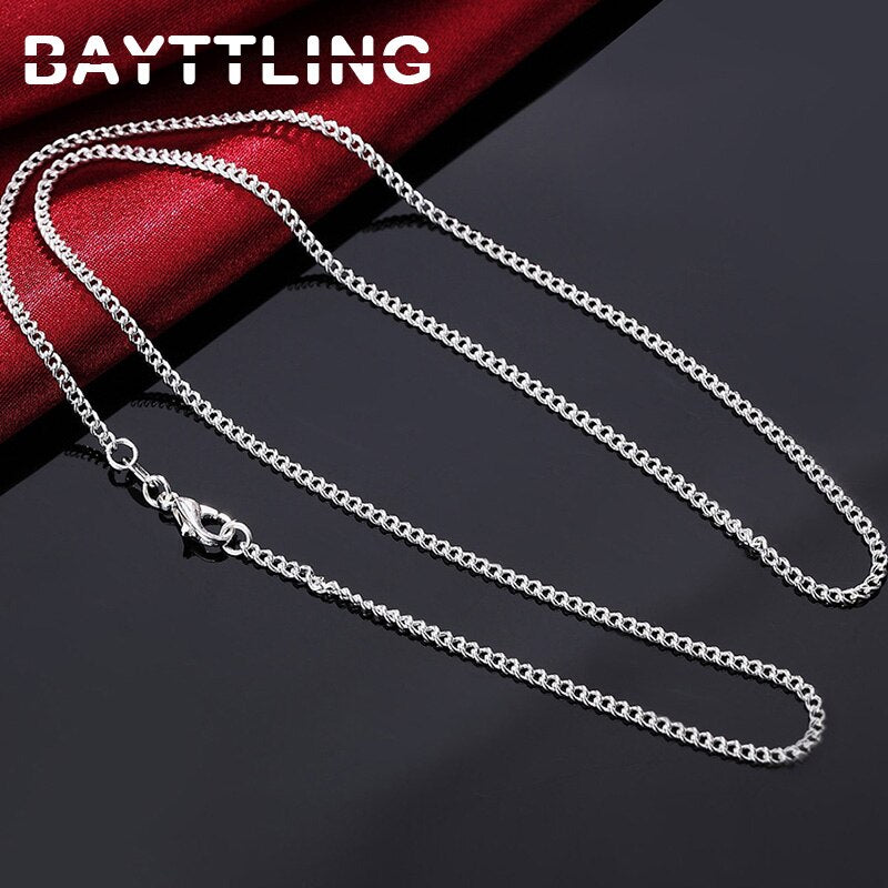 BAYTTLING 925 sterling silver 16/18/20/22/24/26/28/30 inches 2MM Full Sideways Chain Necklace For Women Men Gift Jewelry