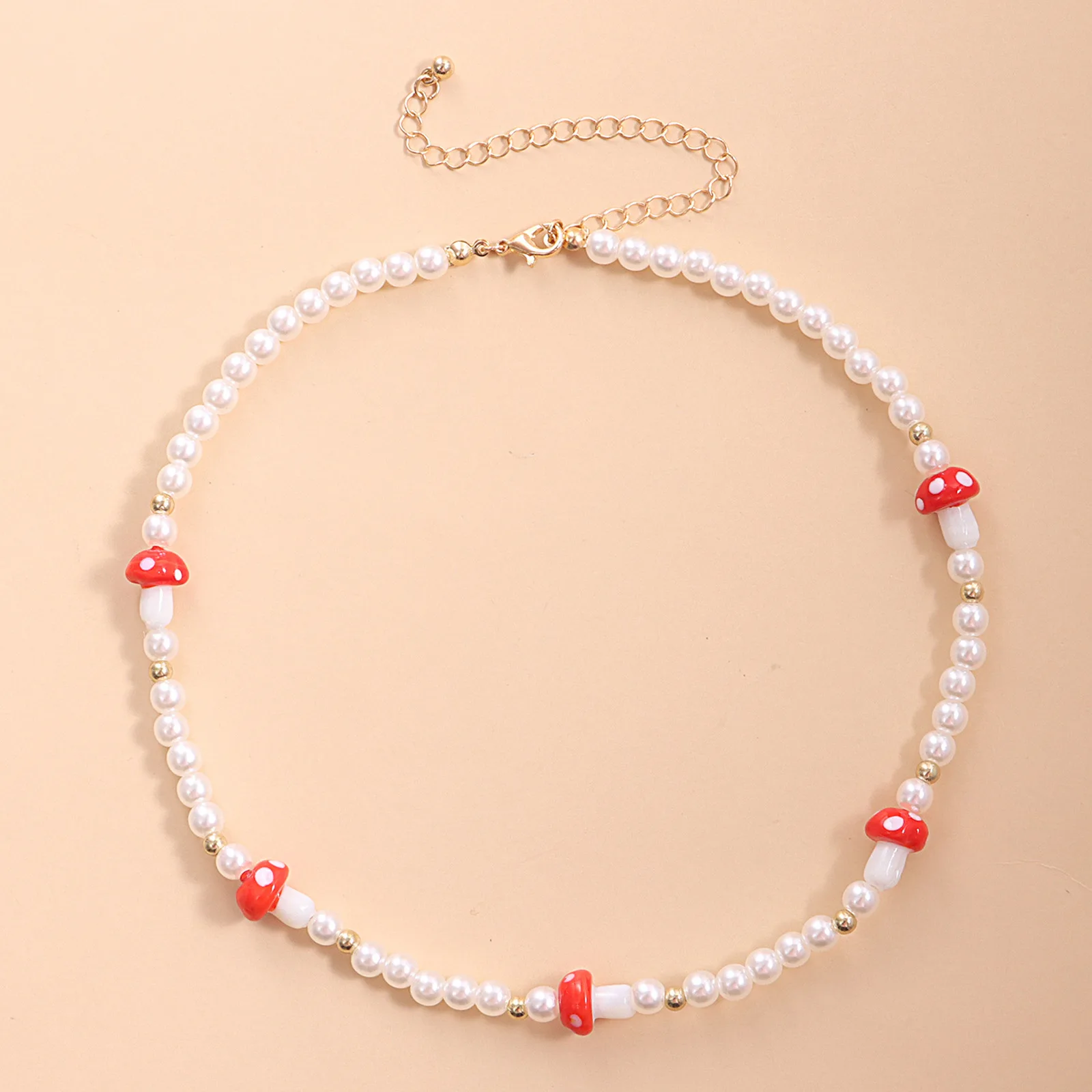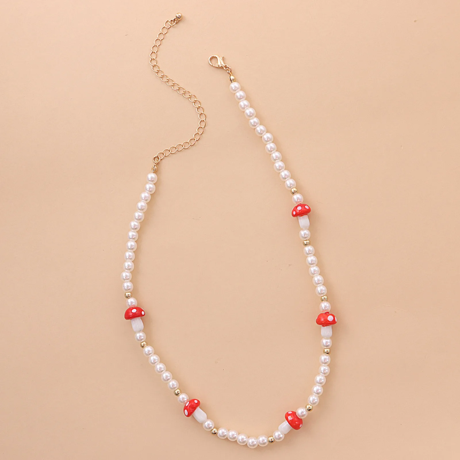 Beaded Necklace For Women on the neck Accessories Mushroom Imitation Pearl Neckalce Jewelry 40cm(15 6/8") long, 1 Piece