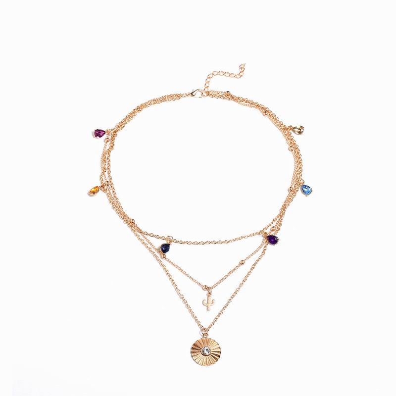 Beaded Necklaces for Women Multilayer Charm Bohemia Gold Necklace Crystal Cross Jesus Pendant Necklace Female Jewelry