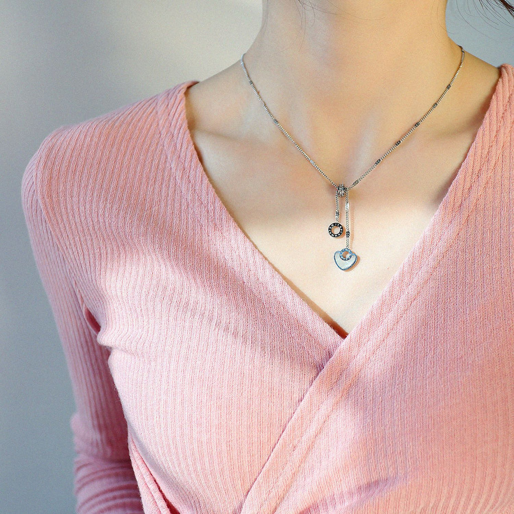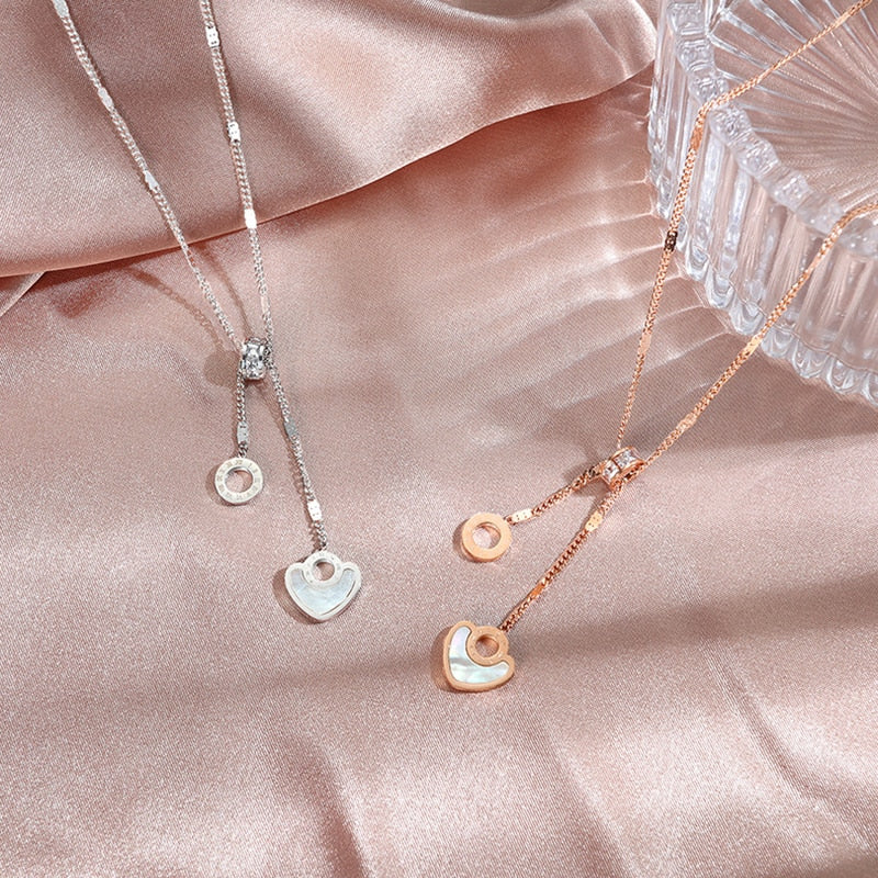 BFORTUNE Stainless Steel And Oyster Materials Roma Numbers Hoop Heart Shape Classical Women Necklaces