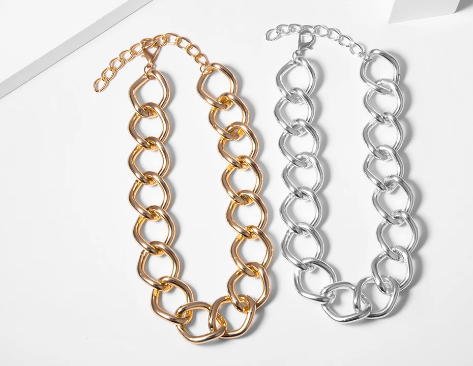 Big Chain Choker Necklace Women Punk Statement Necklace Gold Color Metal Short Chain Necklace Hiphop Jewelry